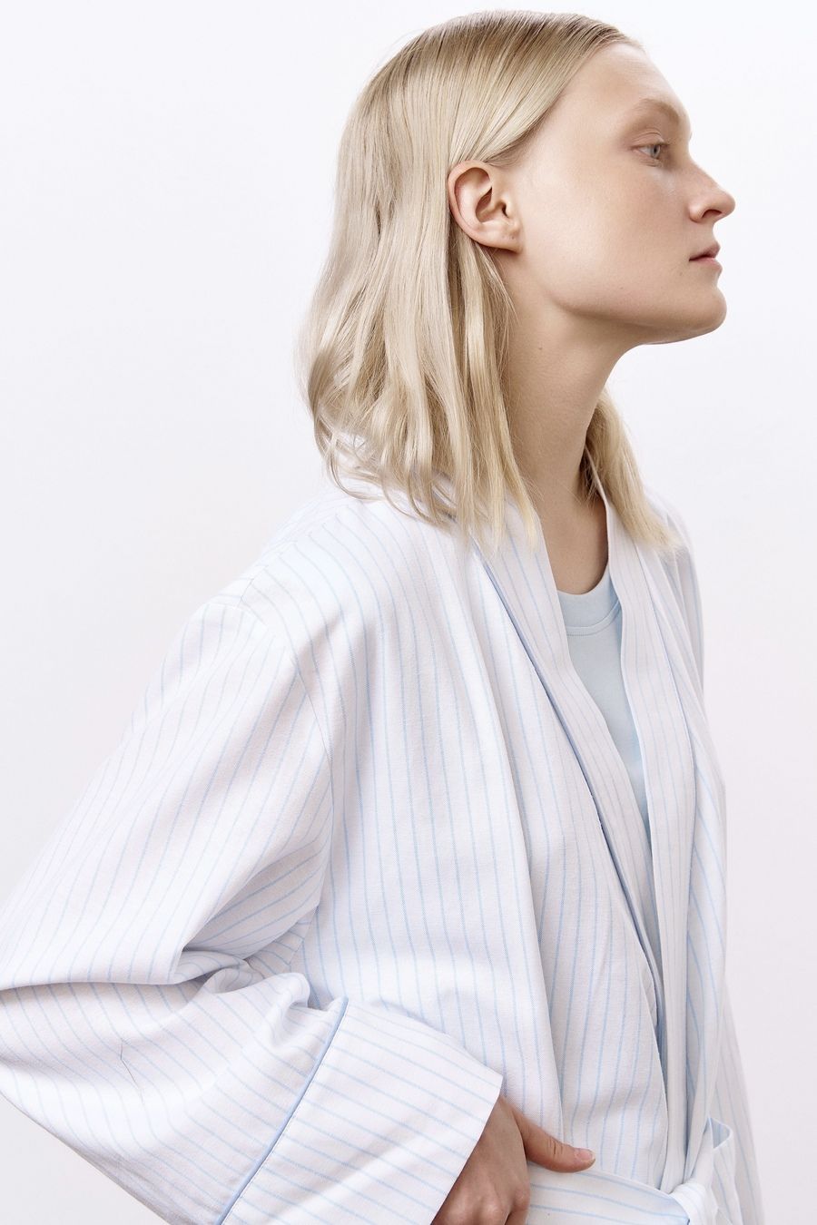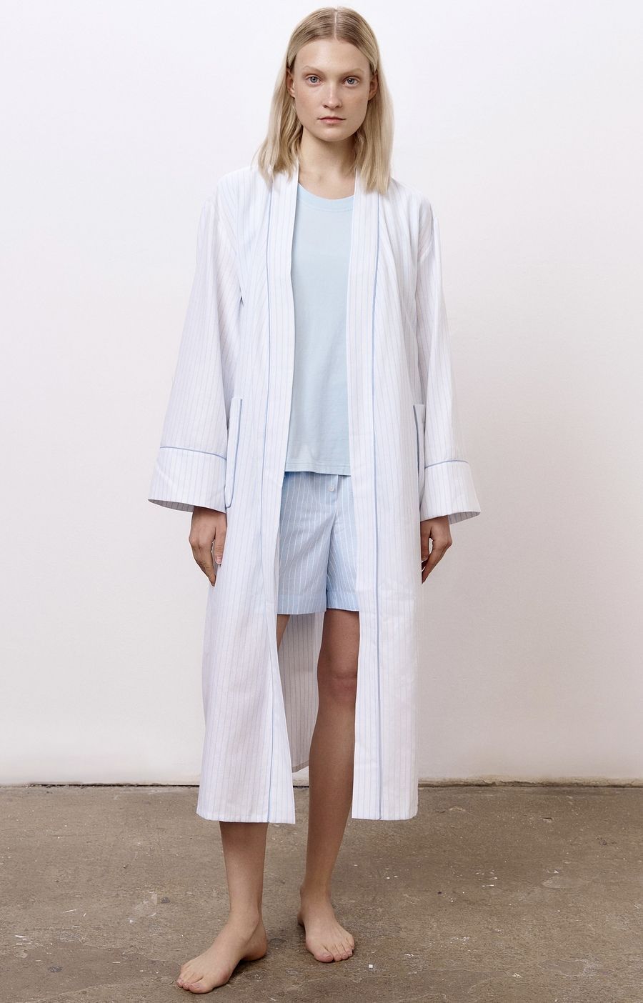 Халат из хлопка с добавлением льна в тонкую полоску, белый