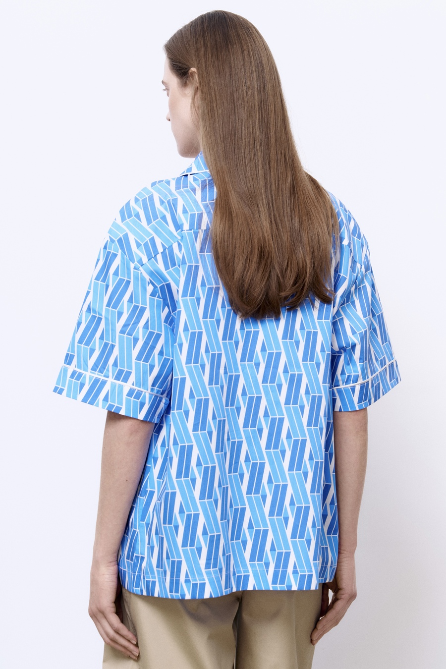 Рубашка из хлопка с геометричным принтом, голубой