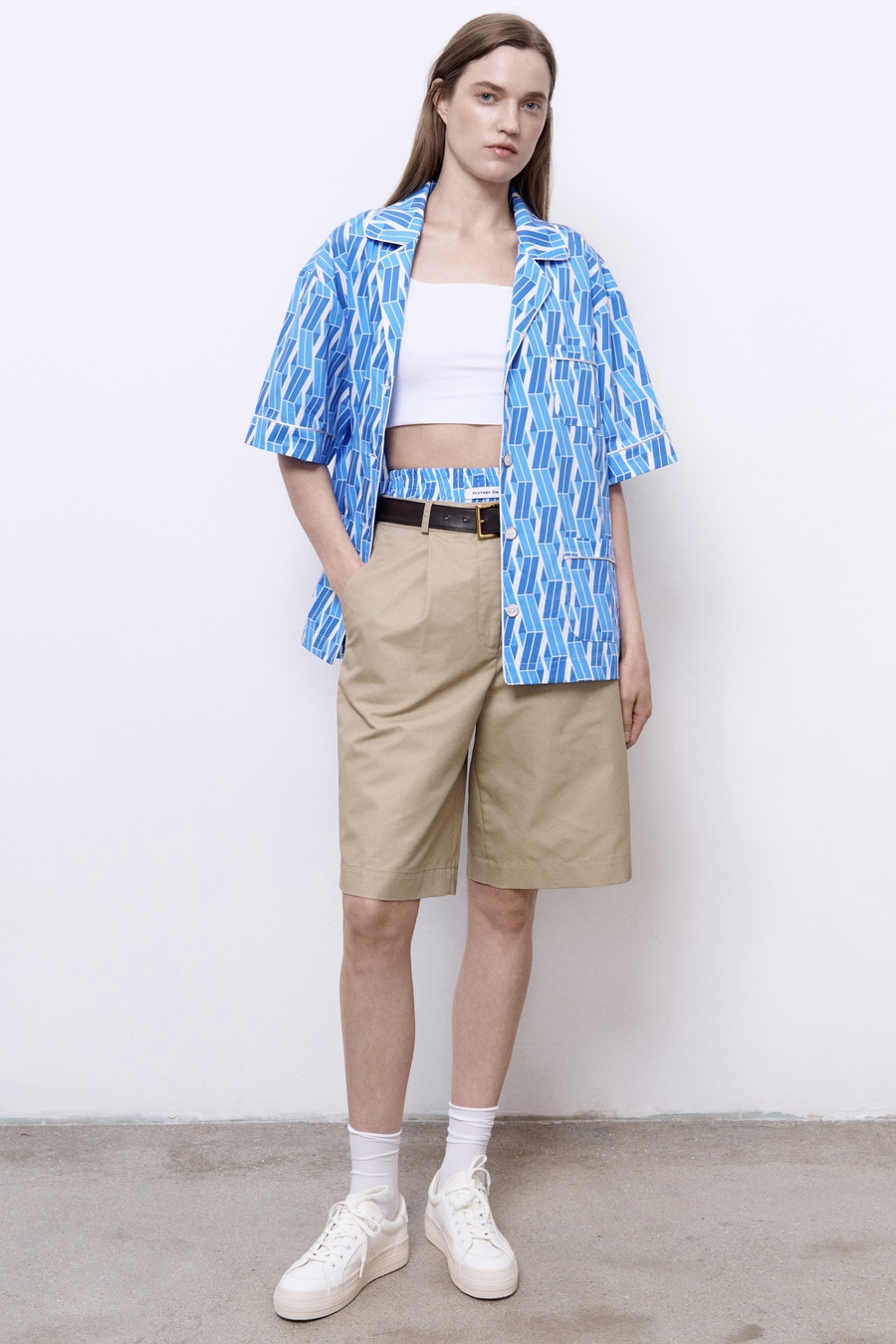 Рубашка изготовлена из мягкого хлопка, она приятна к телу и создает ощущение комфорта в жаркую погоду. Носите её в городе с шортами из нашей коллекции и сандалиями на грубой подошве.
