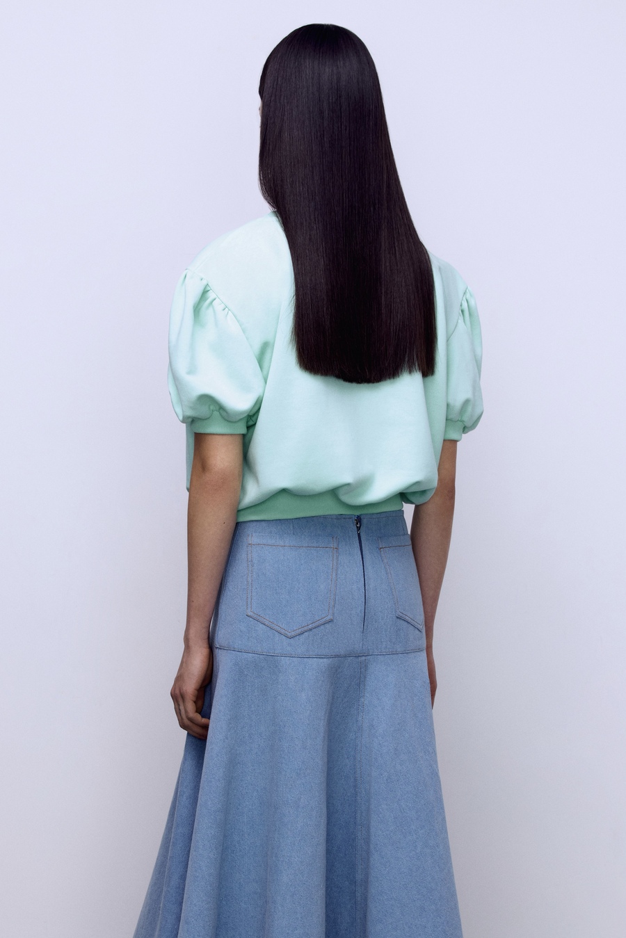 Укороченный топ из мягкого футера. Объёмные рукава-фонарики создают выразительный силуэт, а эластичная резинка подчёркивает талию. Комфортная и стильная модель для повседневных образов. Носите с брюками или юбками миди из нашей коллекции и кедами для расслабленного лука или сочетайте с юбками мини и босоножками для более женственного комплекта.