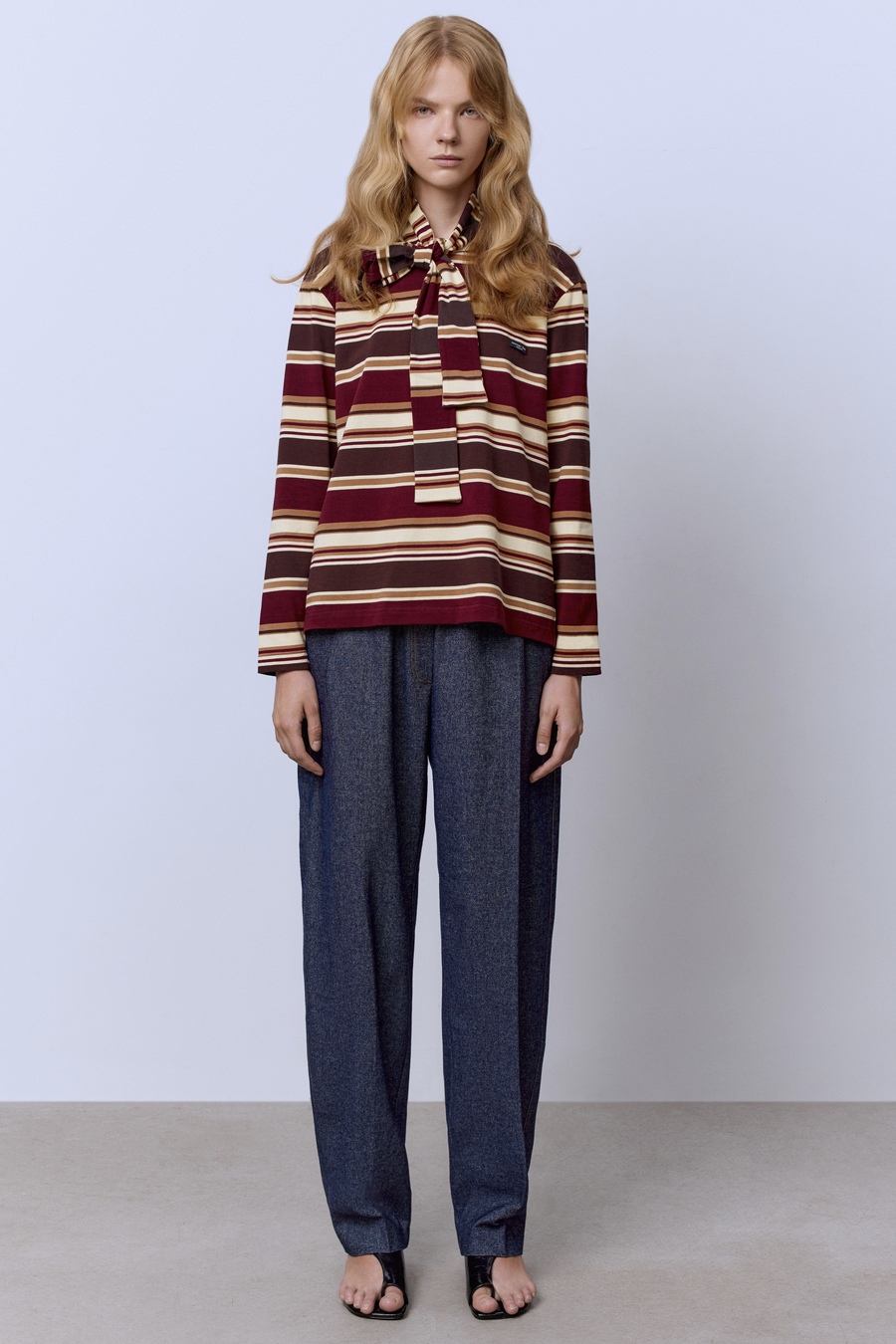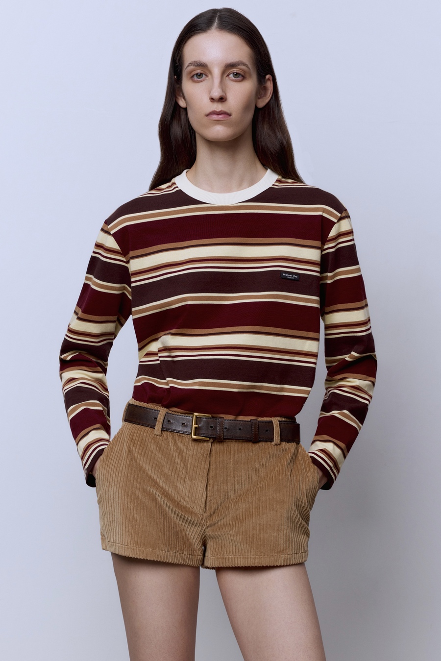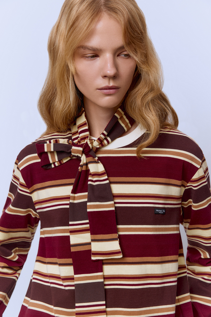 Лонгслив в полоску из итальянского хлопка, бордовый