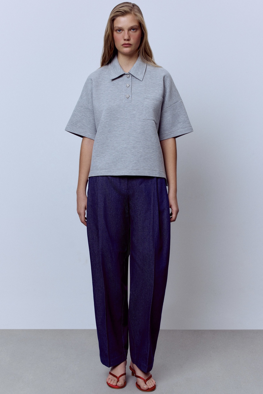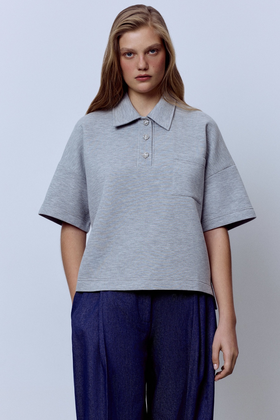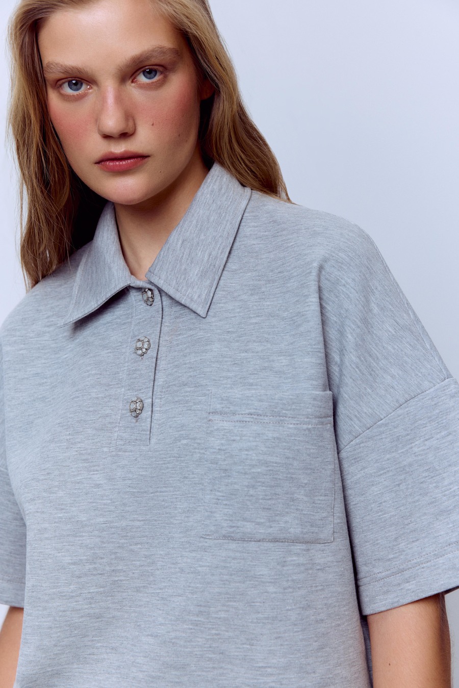 Поло из хлопкового джерси с кристальными пуговицами, серый