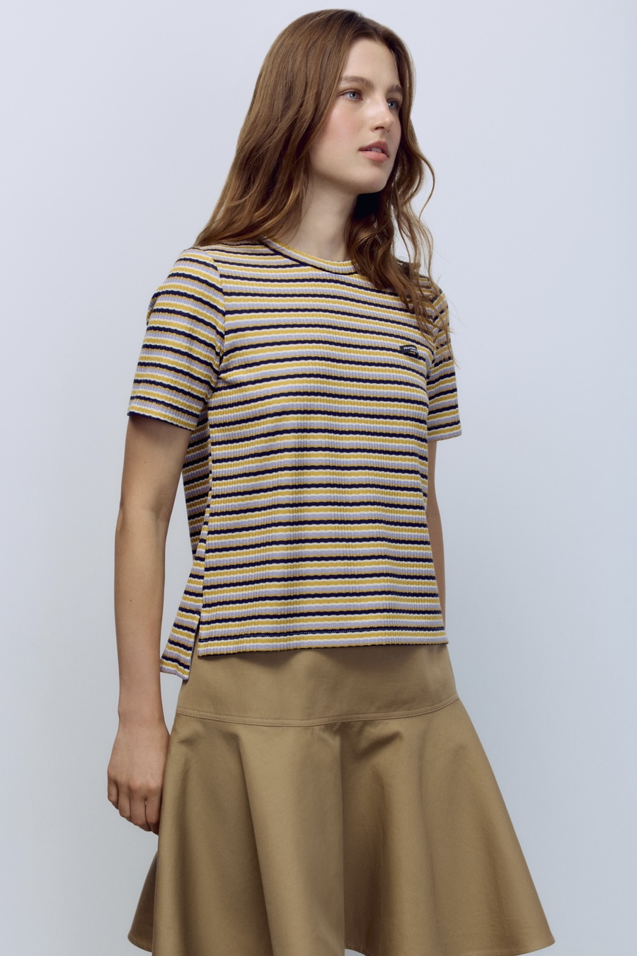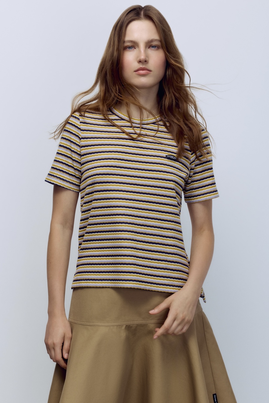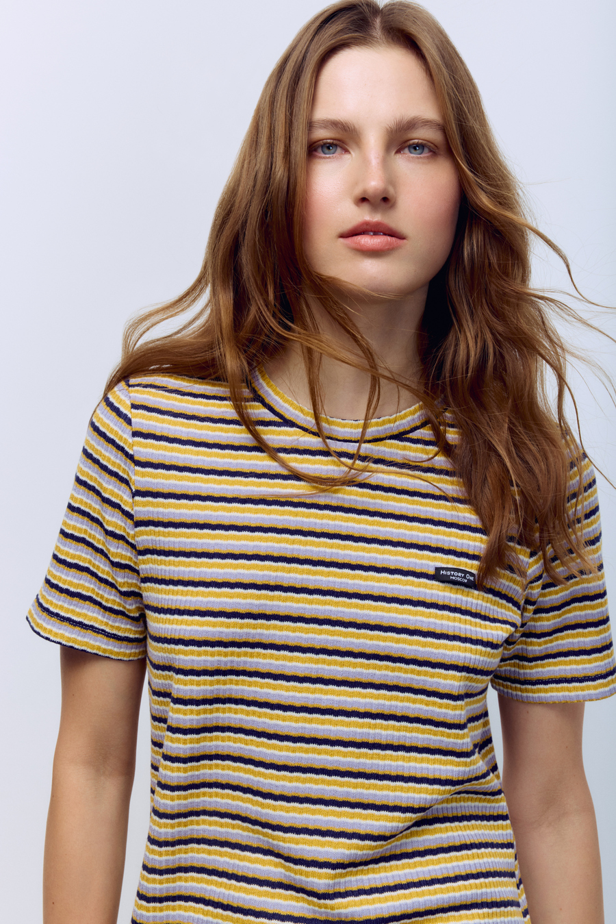 Футболка в полоску из вискозного трикотажа синий/горчичный