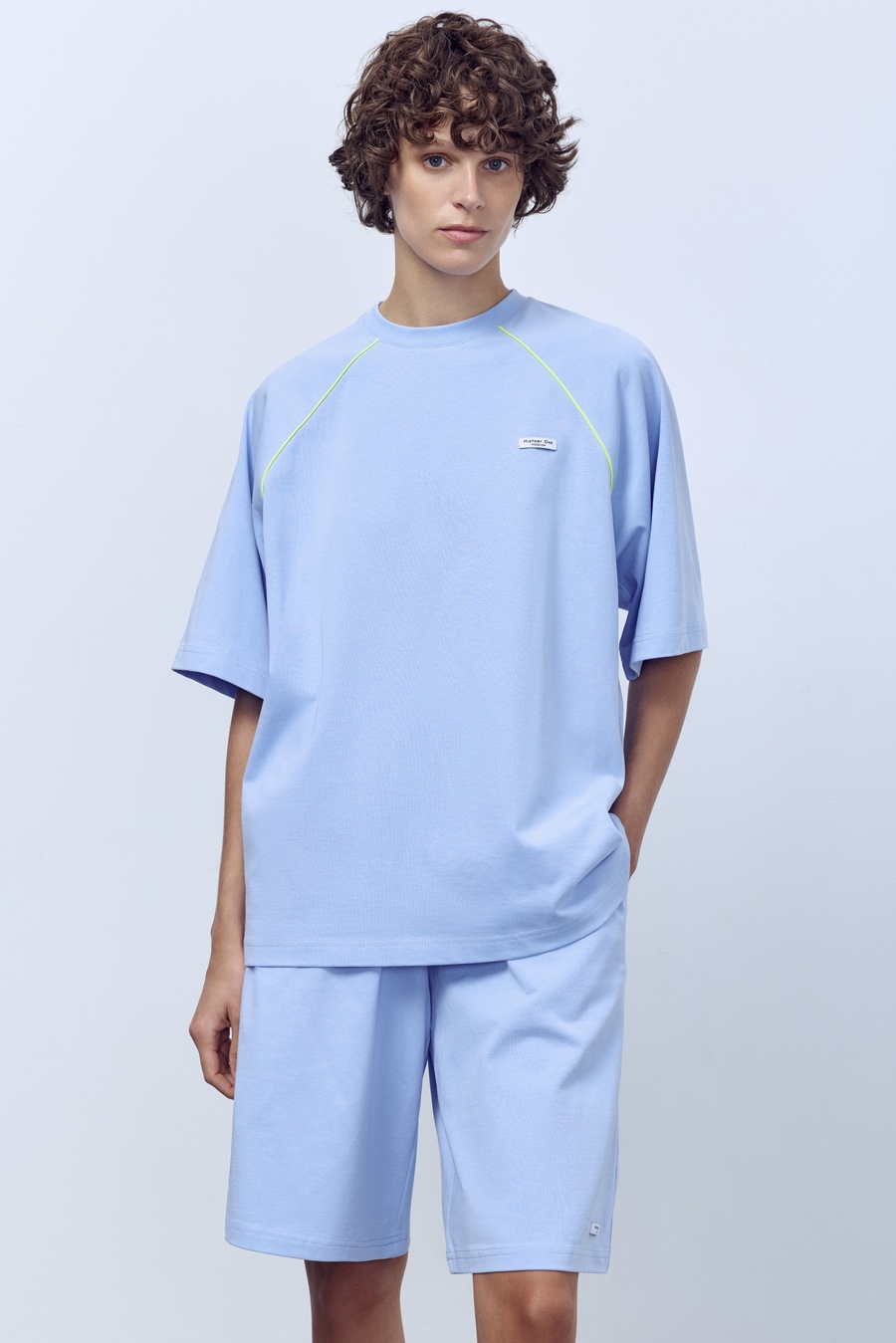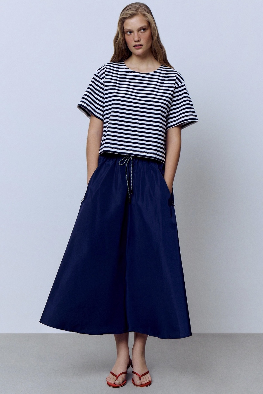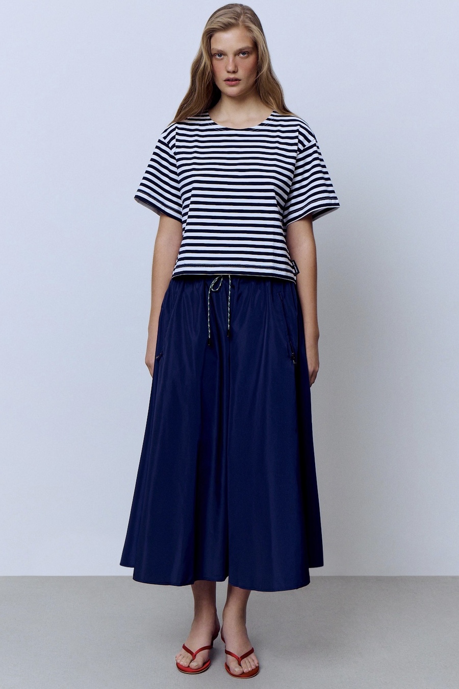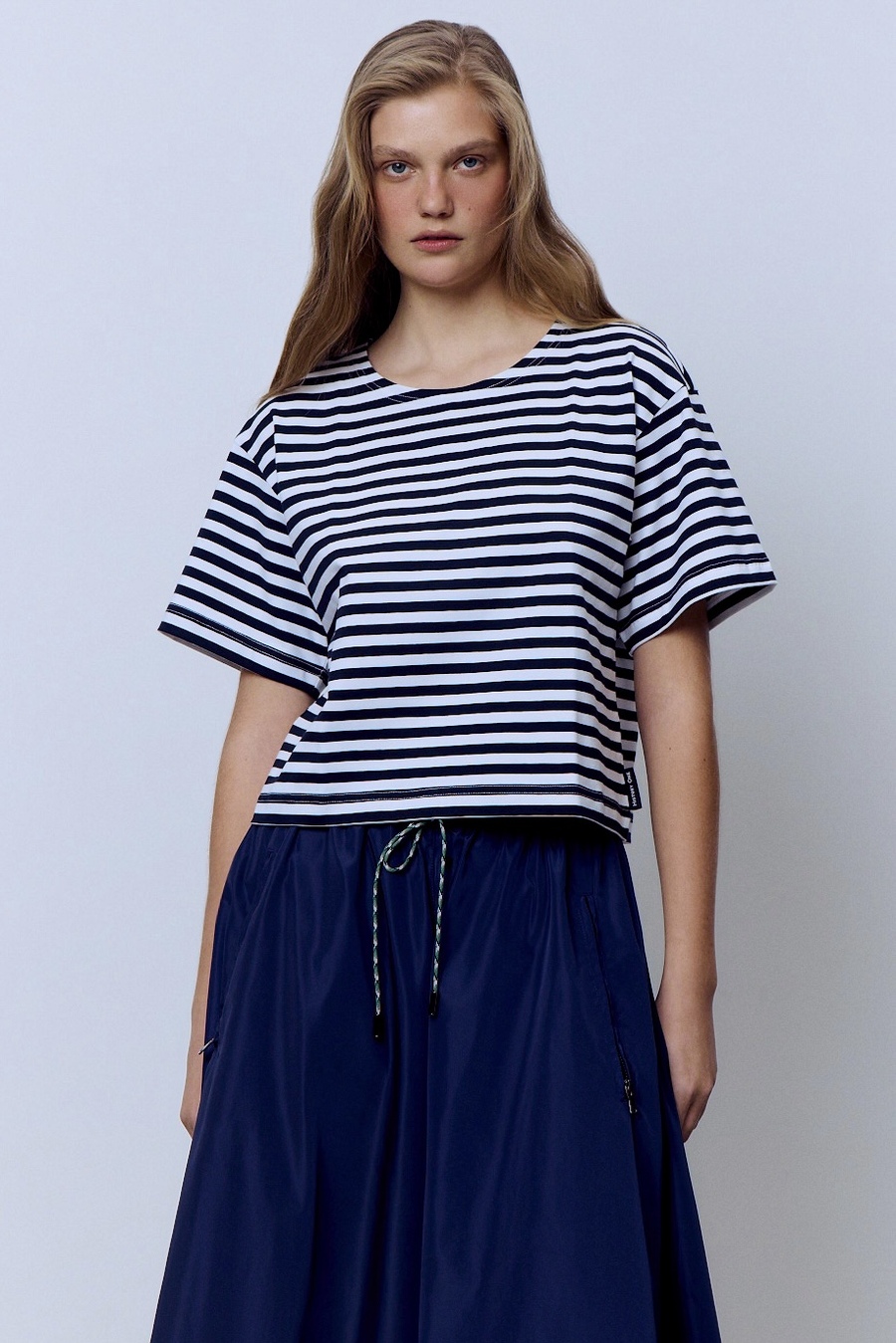 Футболка в полоску из вискозного трикотажа синий/горчичный