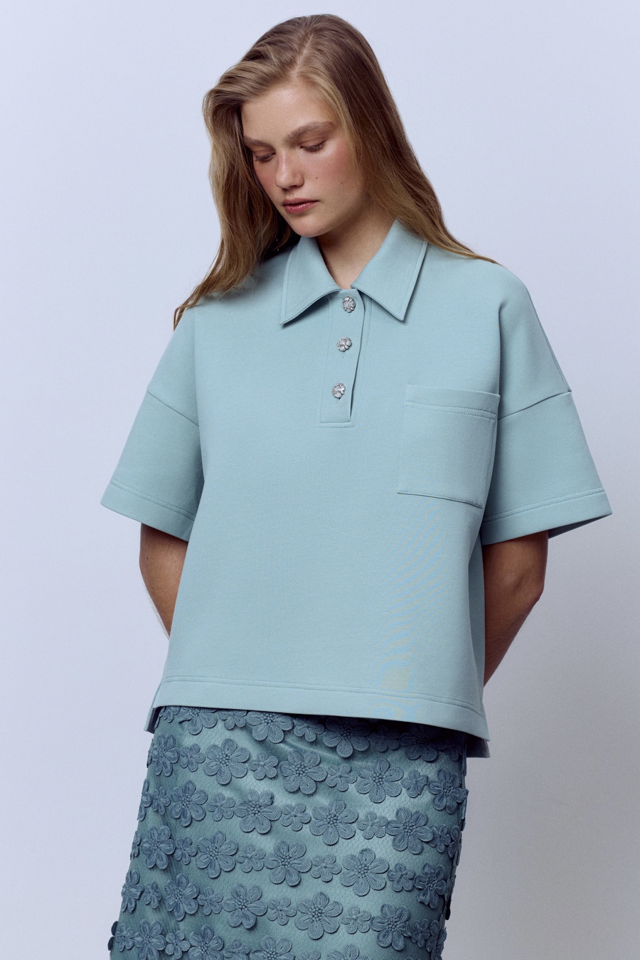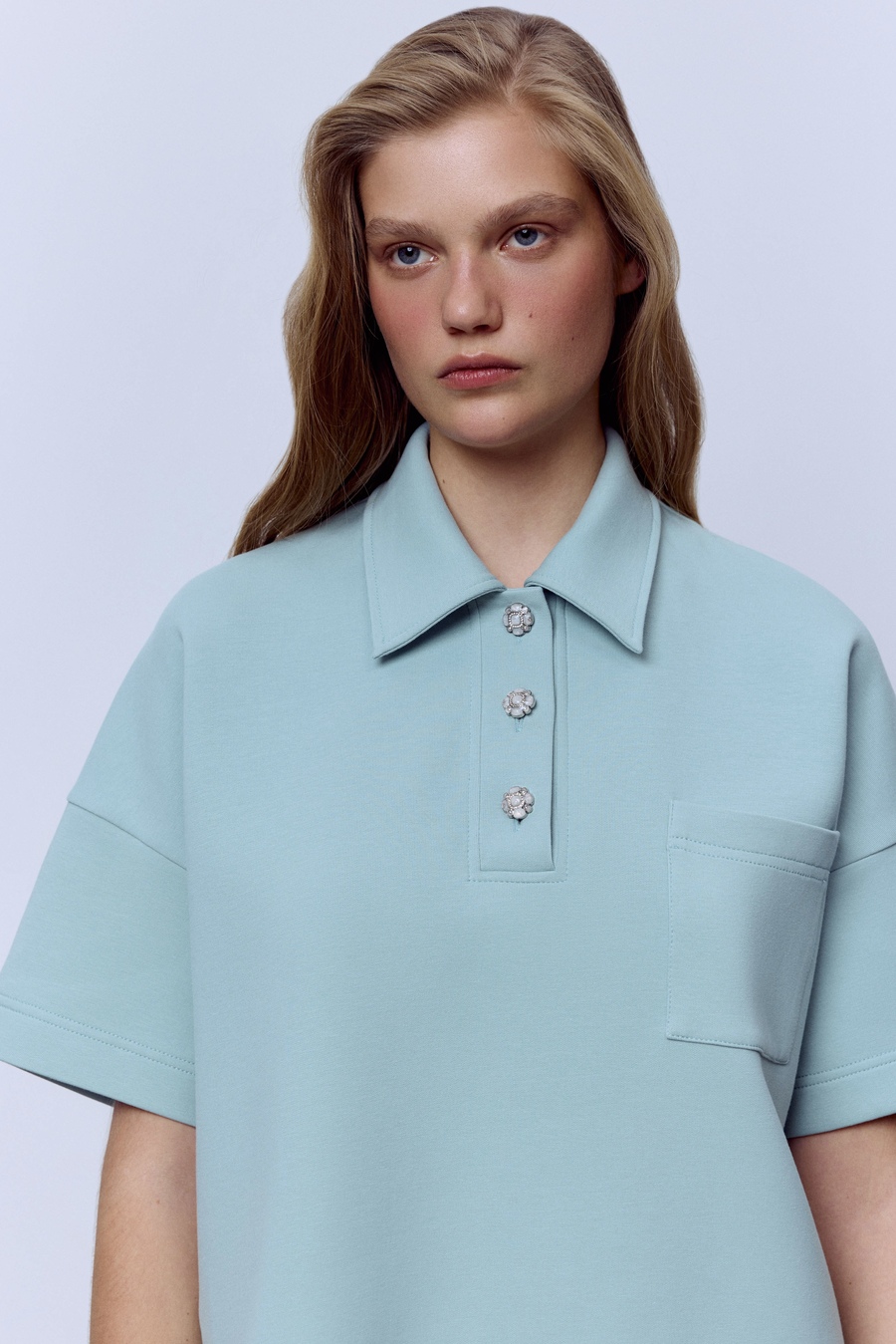 Поло из хлопкового джерси с кристальными пуговицами, мятный