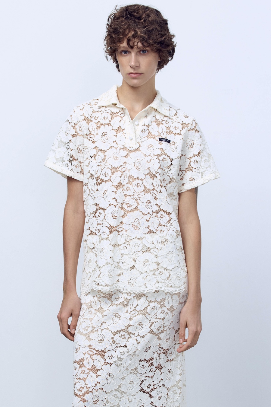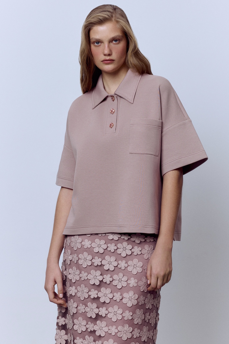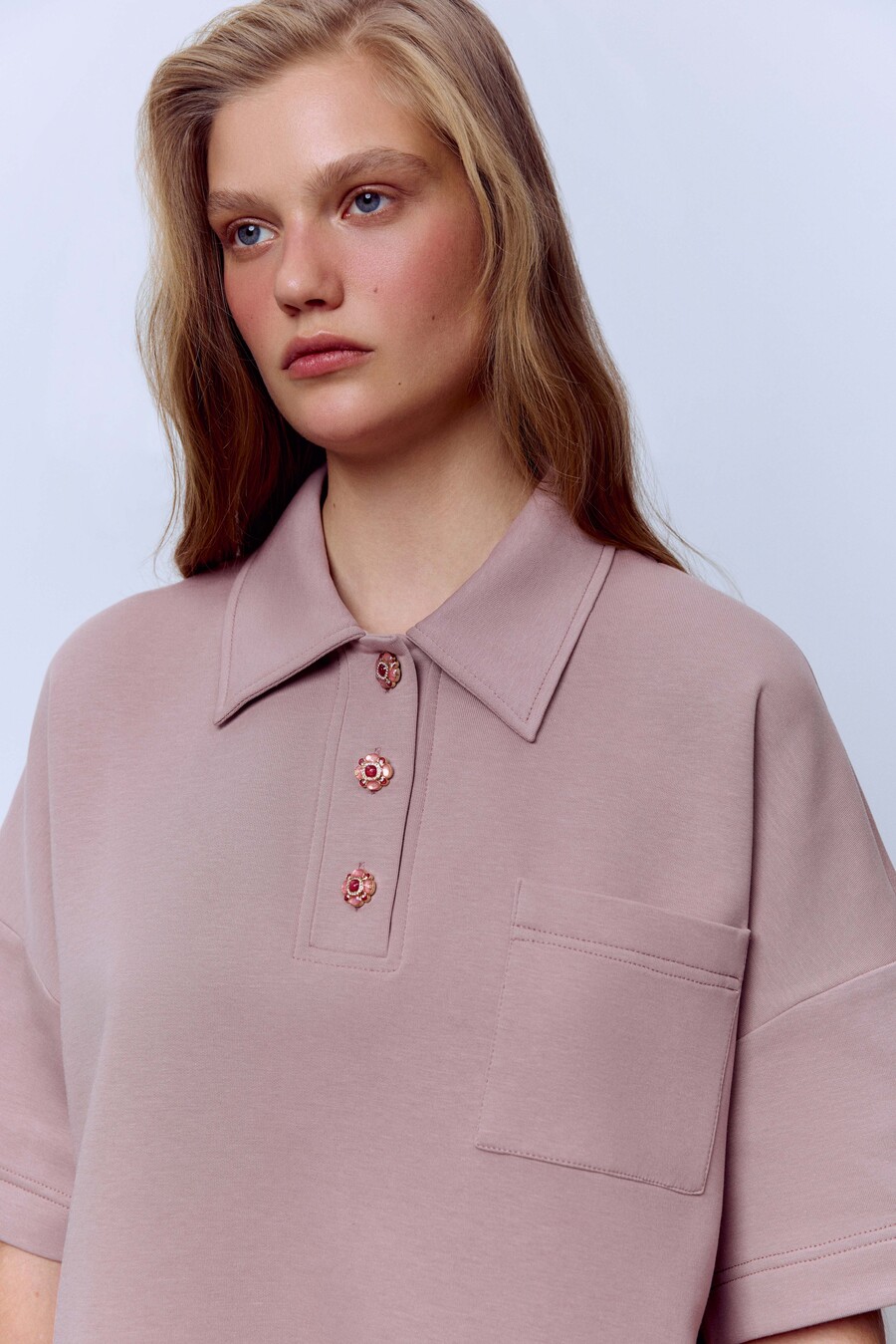 Поло из хлопкового джерси с кристальными пуговицами, телесный