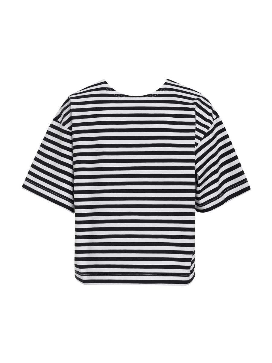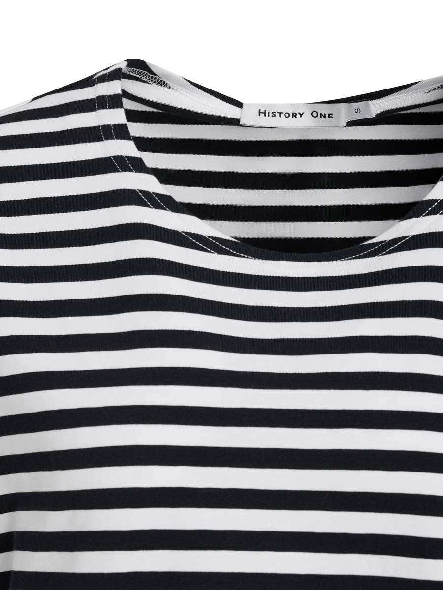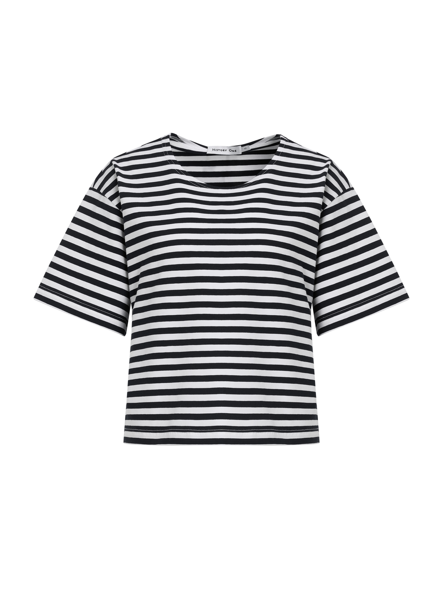 Укороченная хлопковая футболка в горизонтальную полоску — базовое изделие весенней коллекции History One. Идеальный крой, мягкий хлопок, комфортная посадка. Футболка подходит для повседневных образов, спорта, прогулок и отдыха. Сочетайте с джинсами, шортами, юбками и любимой верхней одеждой — куртками или жакетами.