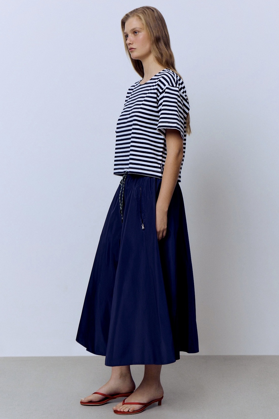 Футболка-кроп из хлопка в полоску, синий