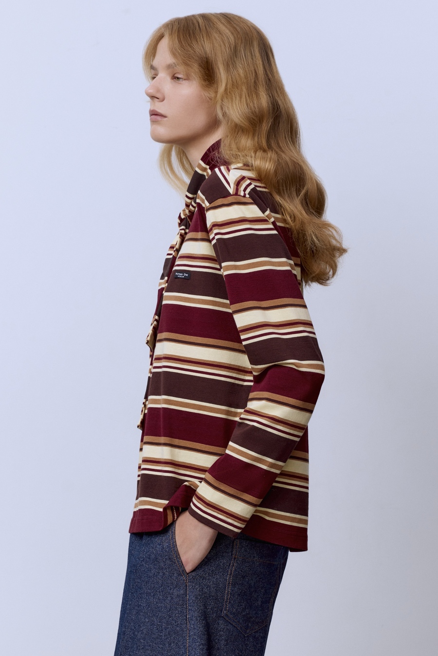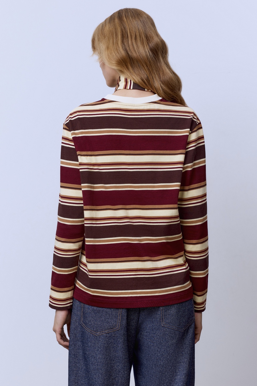 Лонгслив в полоску из итальянского хлопка, бордовый