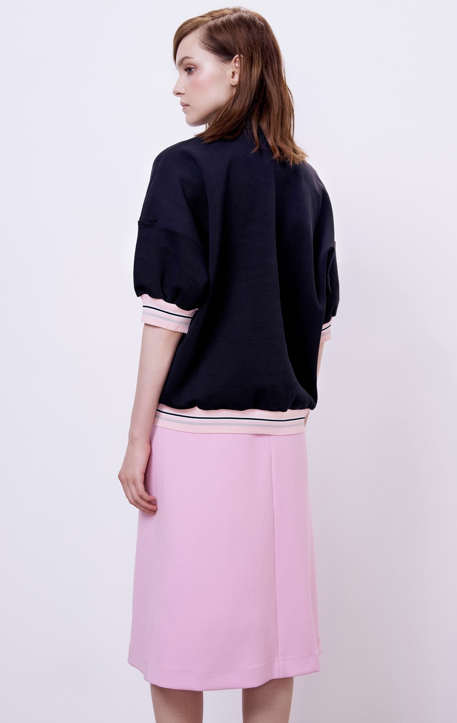 Изделия из наших коллекций отличаются яркими акцентами и поло не исключение: мы дополнили его контрастными манжетными резинками на рукавах и аккуратными пуговицами в тон.