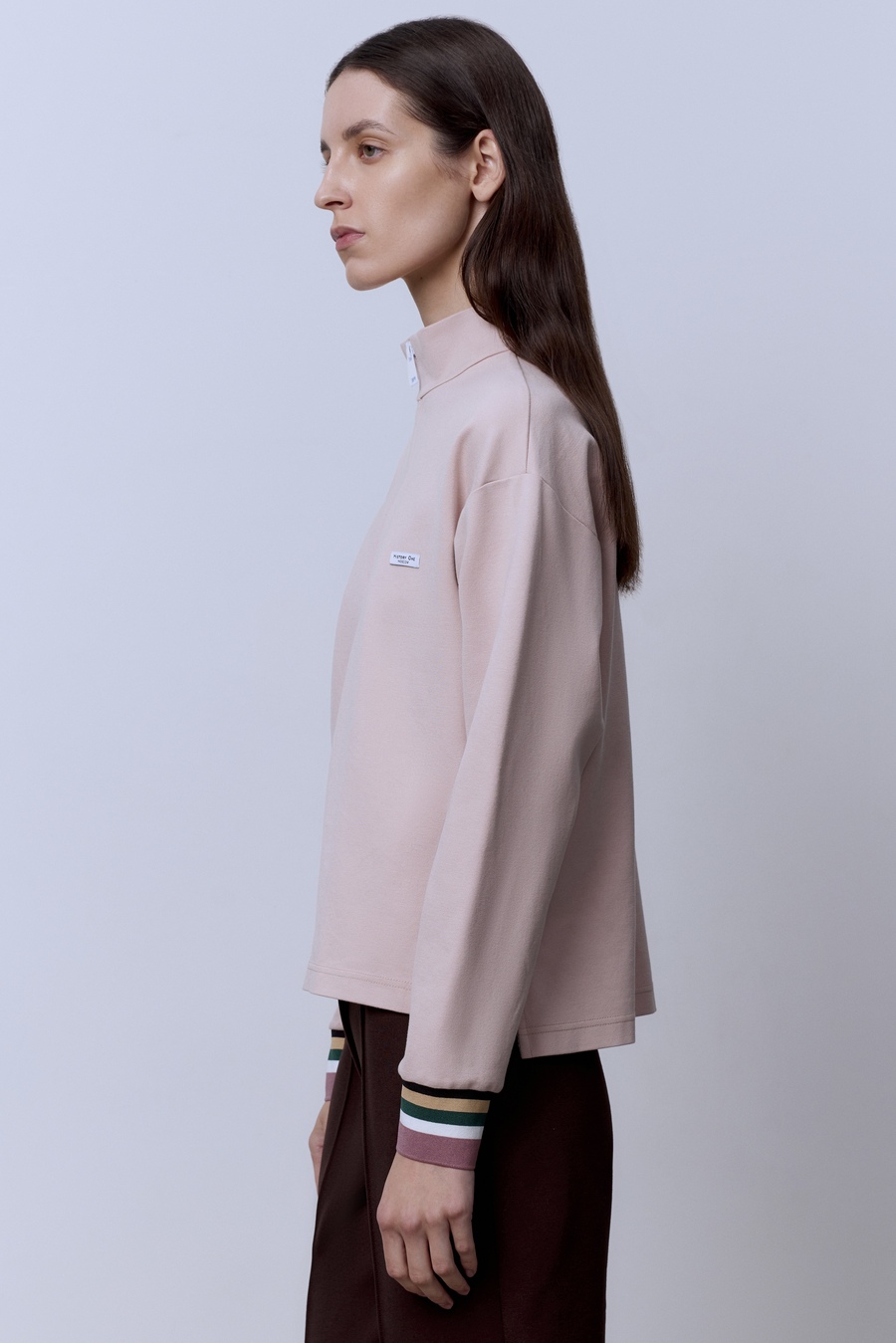 Поло на молнии с длинным рукавом, телесный
