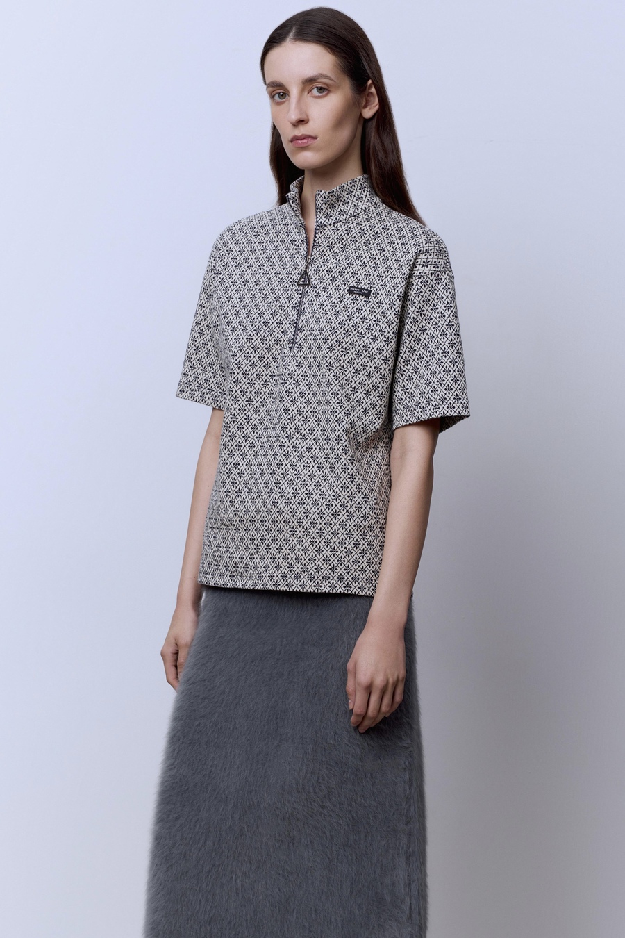 Поло на молнии из хлопка с цветочным принтом — свежий взгляд на спорт-шик. Мягкая ткань дышит и дарит комфорт, а контрастный рисунок превращает базовую вещь в акцент. Молния добавляет динамики и намёк на дерзость, уравновешивая романтичный мотив.