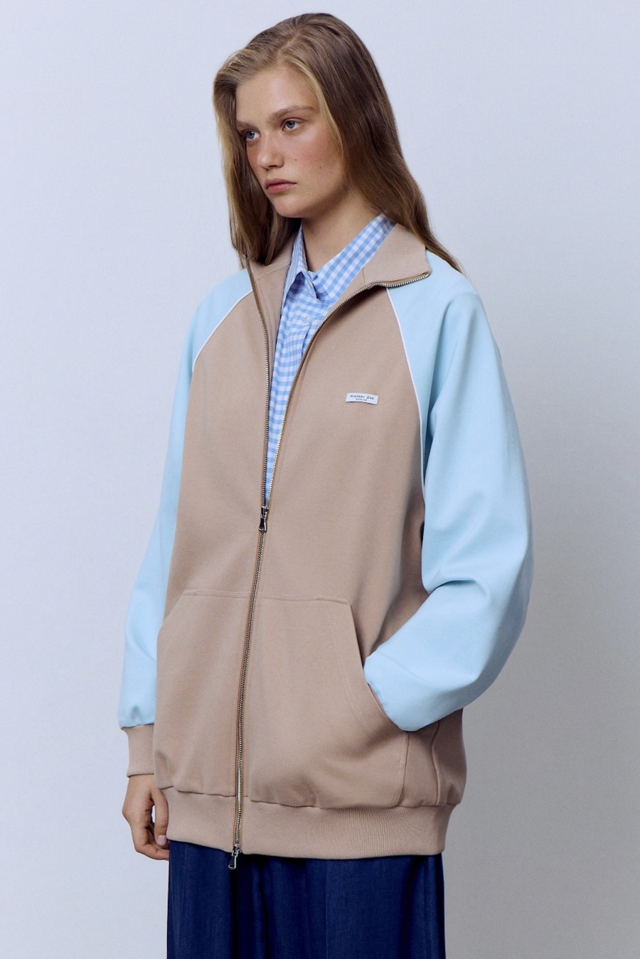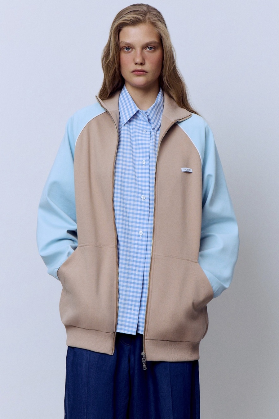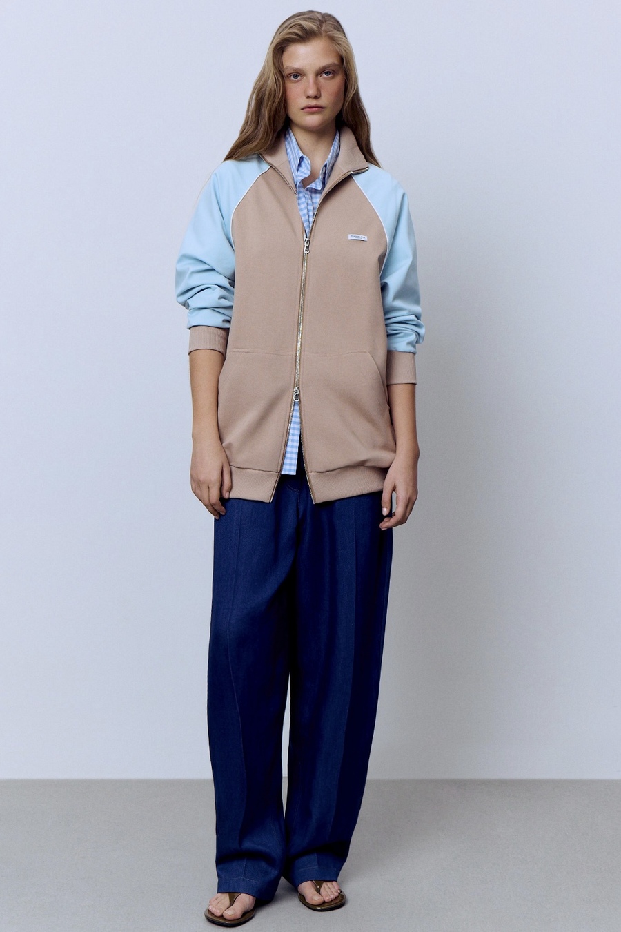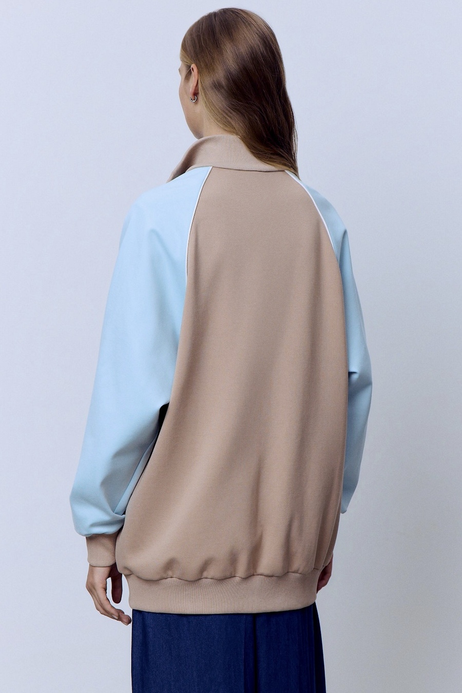Спокойный бежевый оттенок в дуэте с небесно-голубыми рукавами — это больше, чем просто удобная вещь. Это способ выразить своё настроение: лёгкое, собранное, с акцентом на детали.
