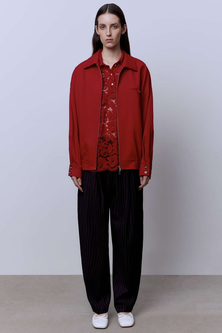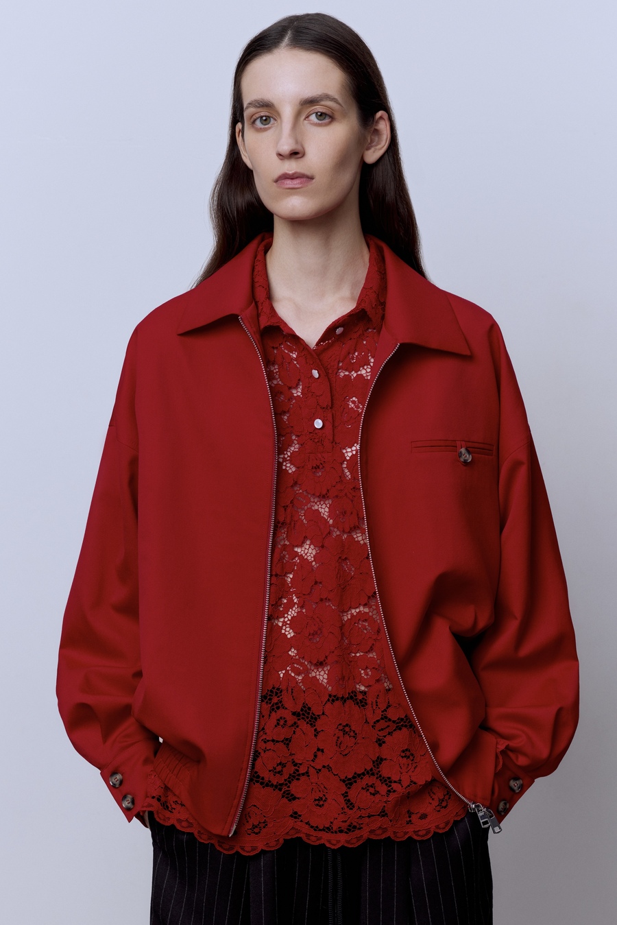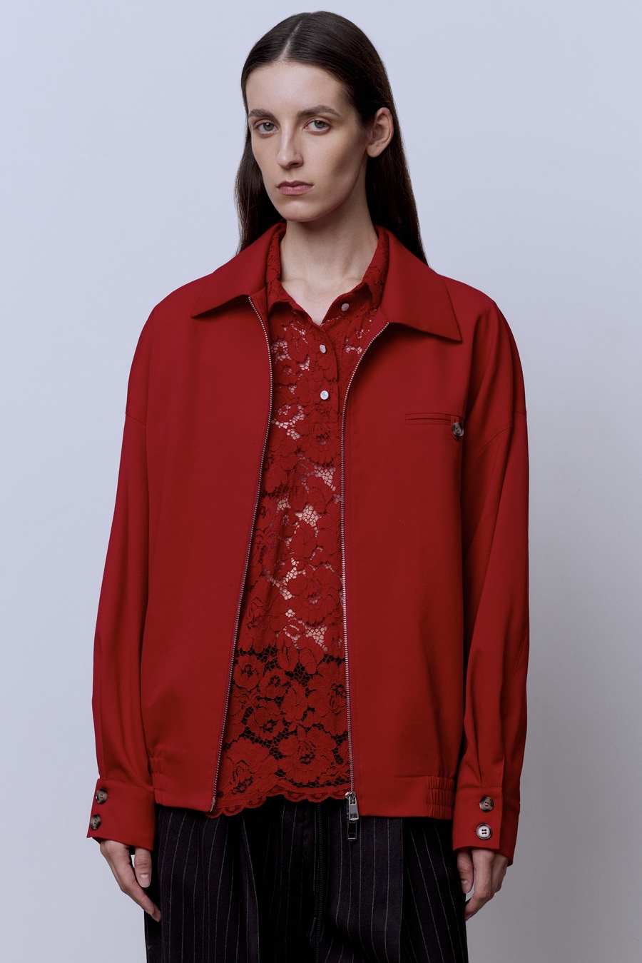 Бомбер из костюмной шерсти, красный