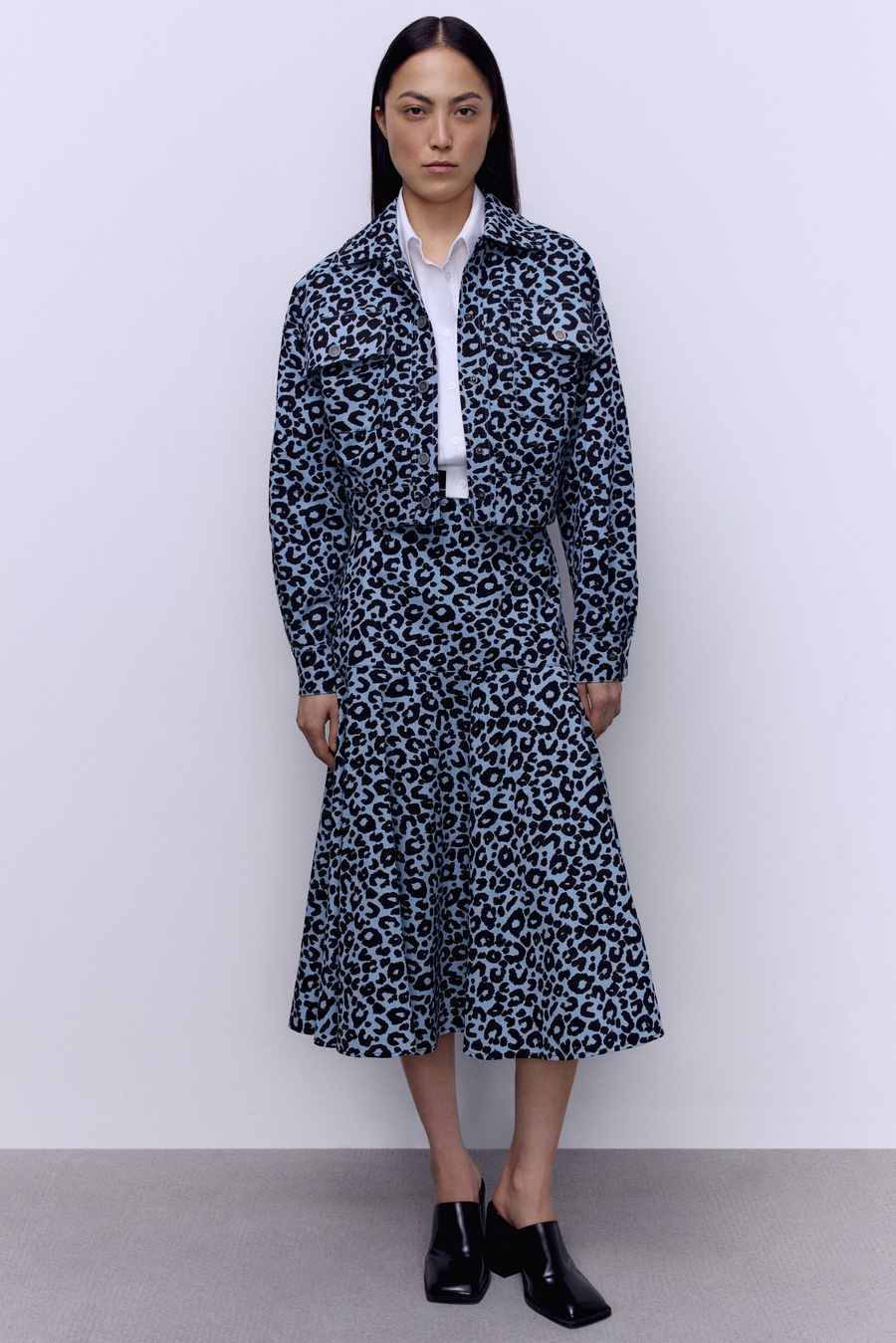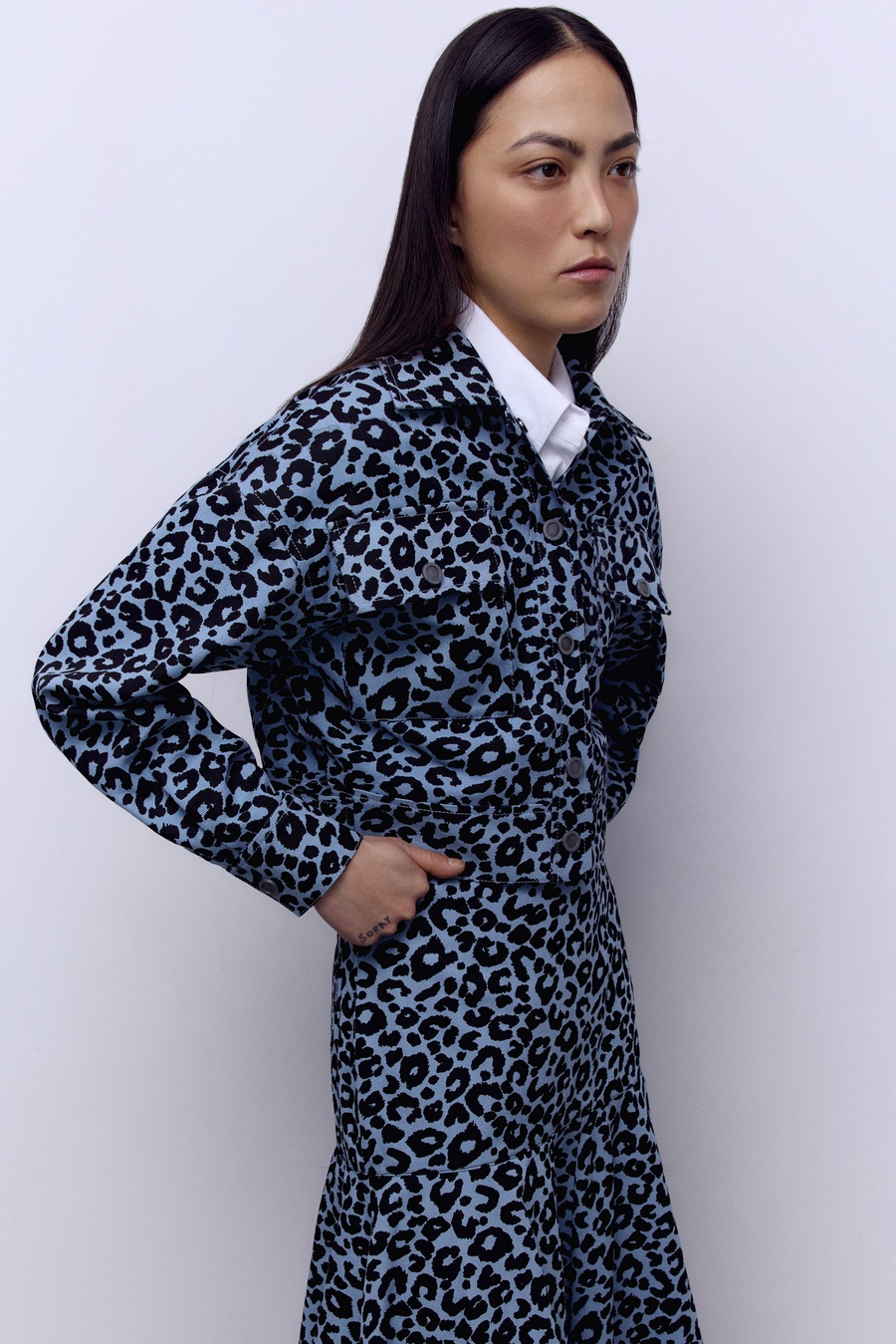 Куртка из лёгкого денима с анималистичным принтом голубой