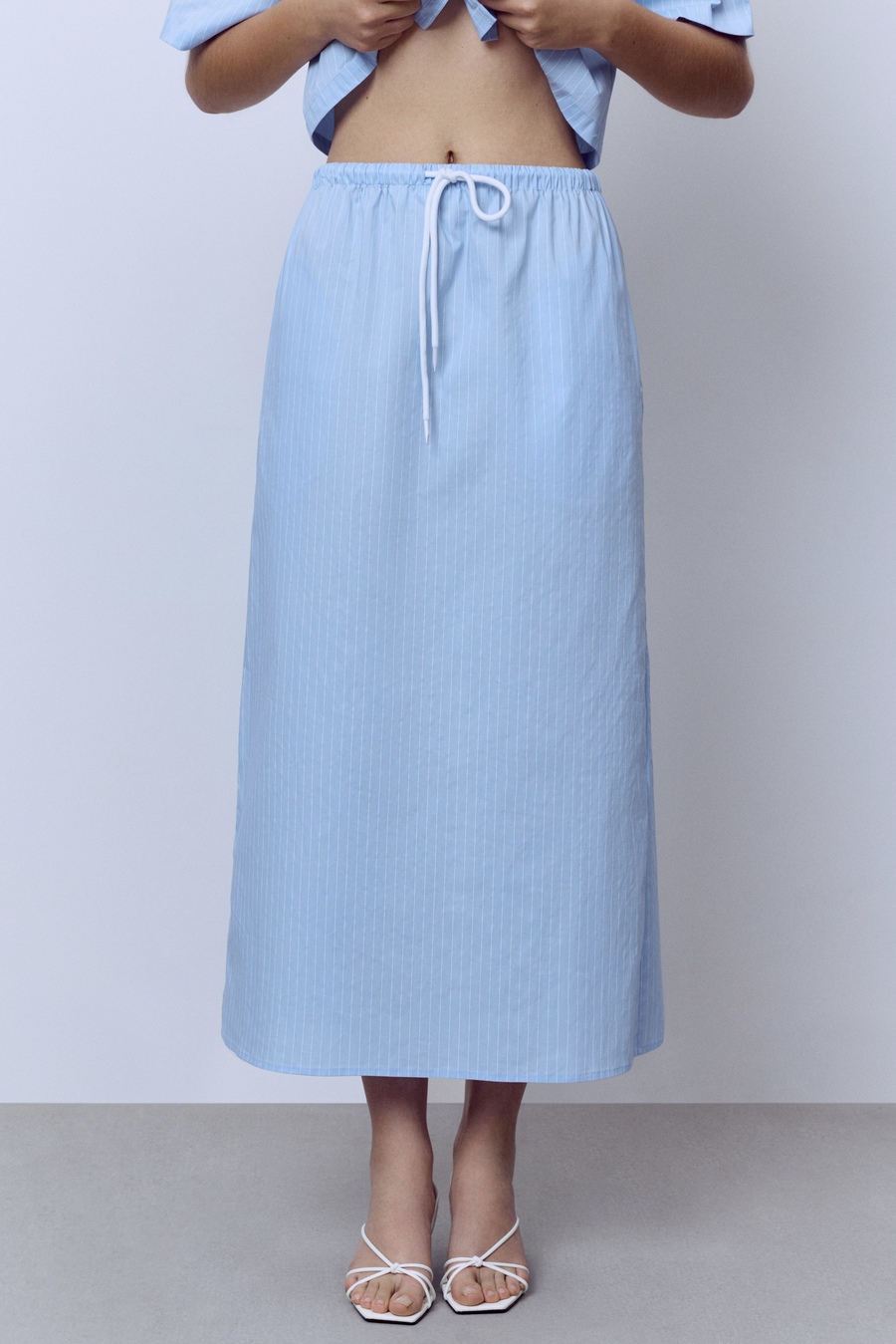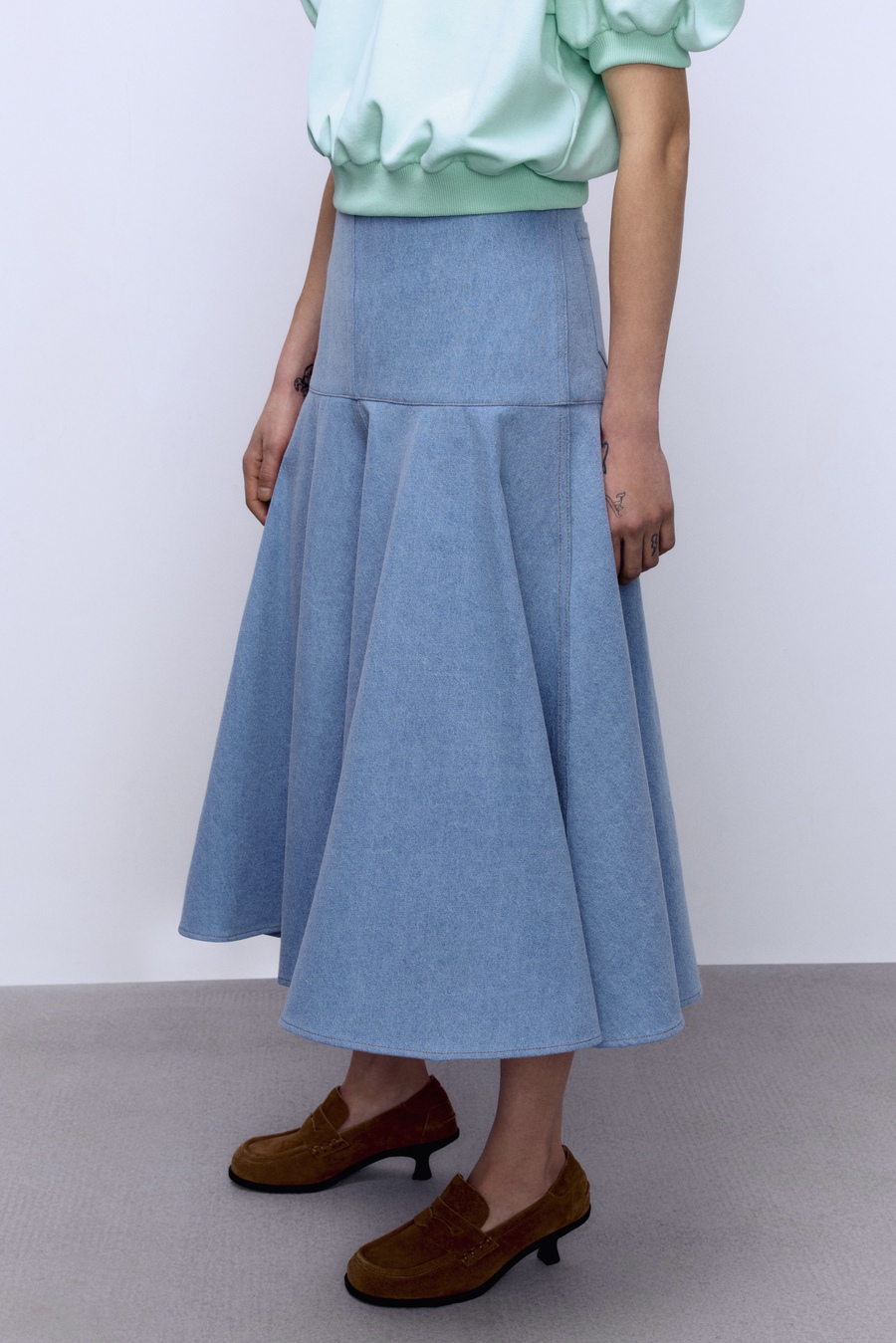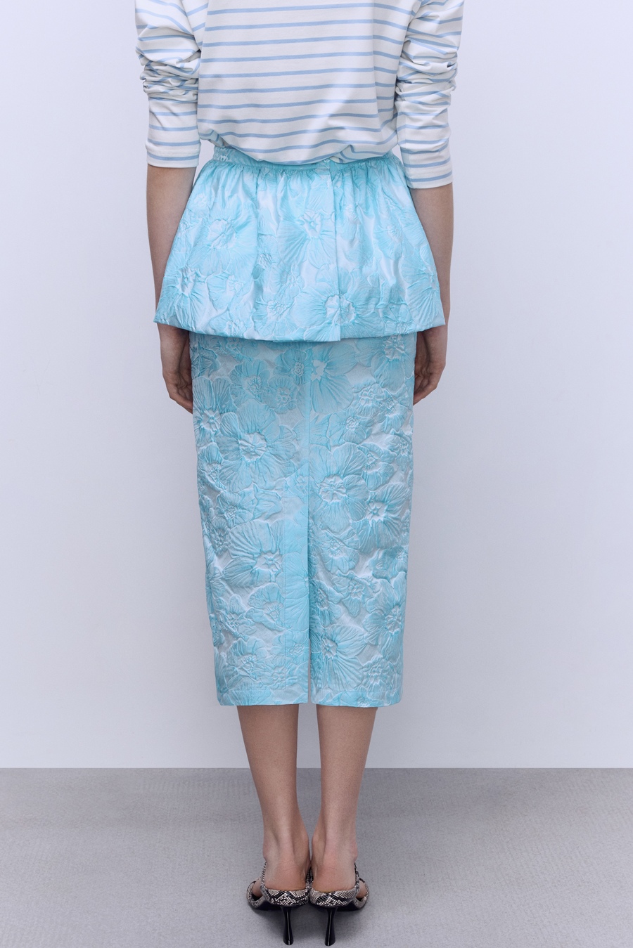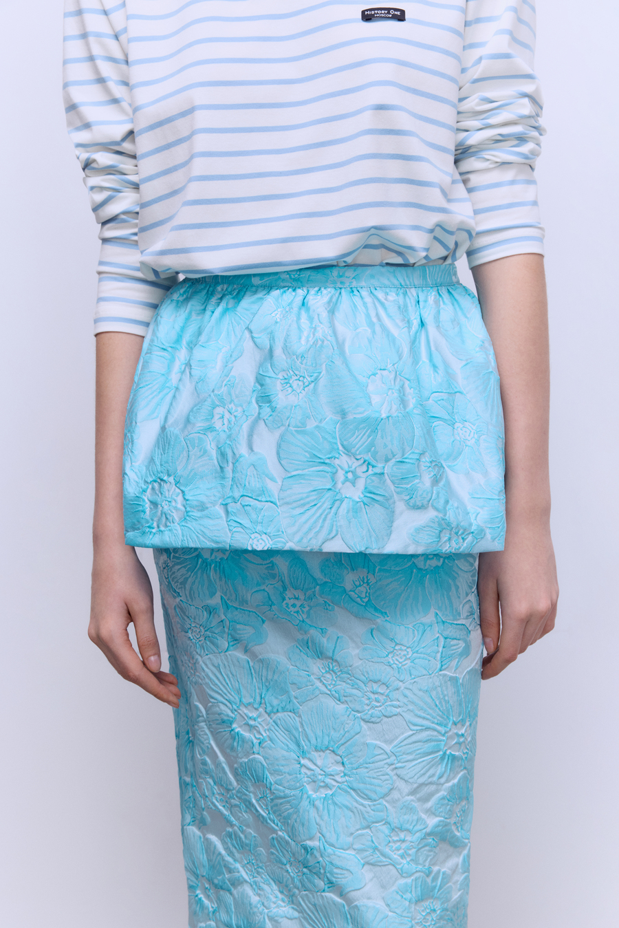 Юбка-тубина из жаккарда с накладной баской, голубой