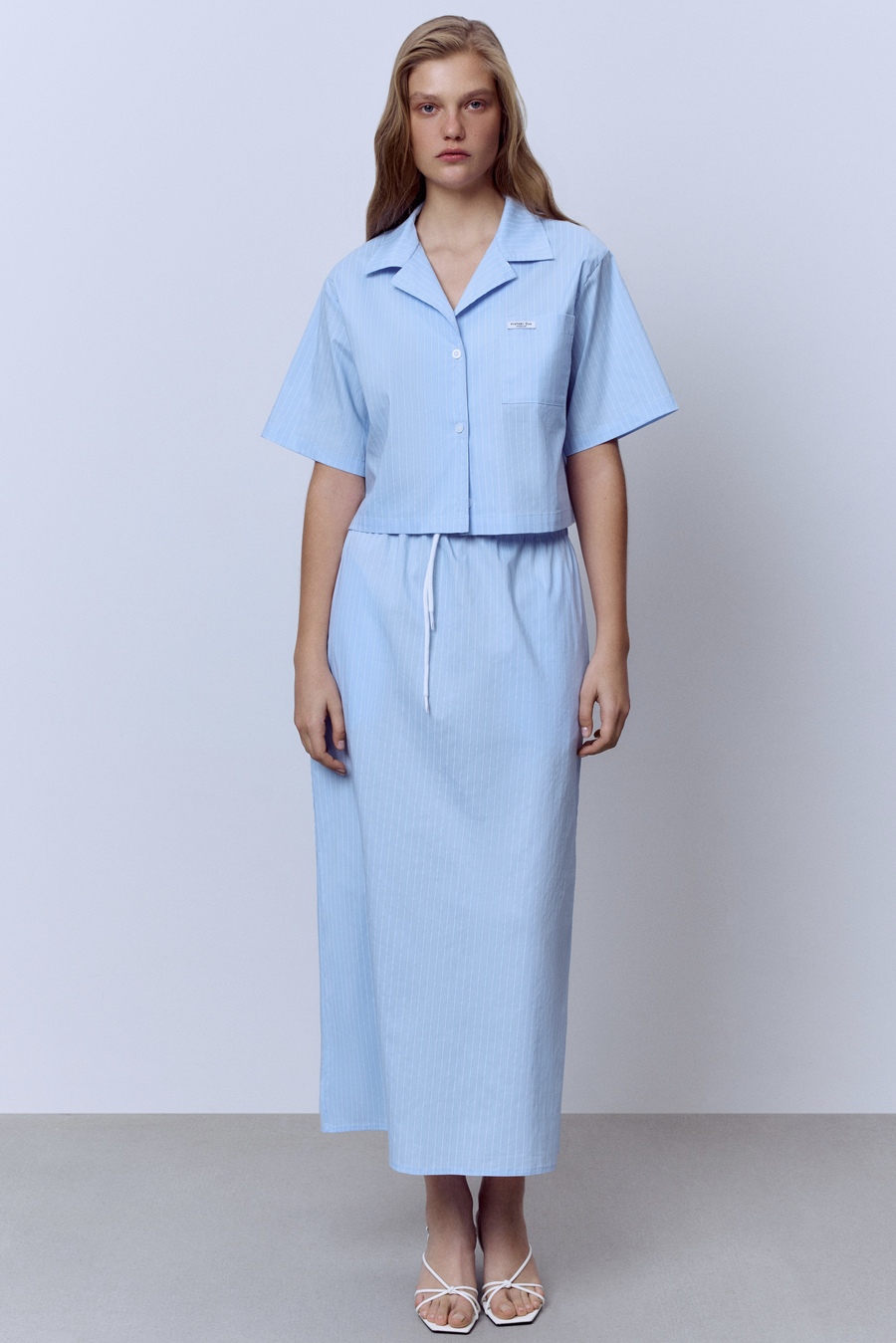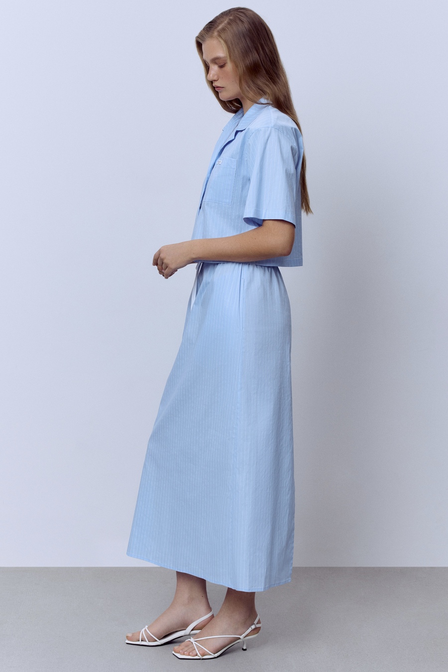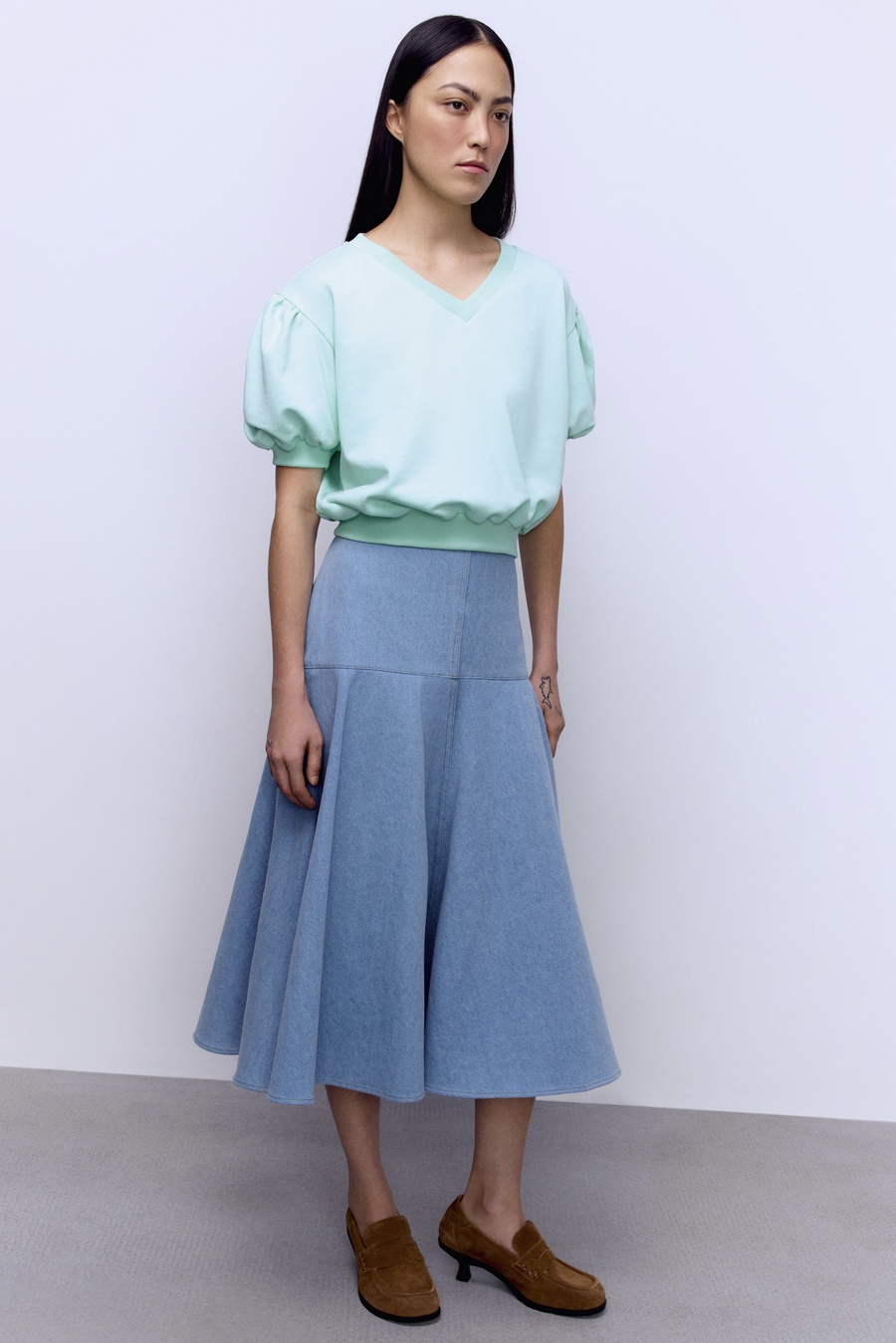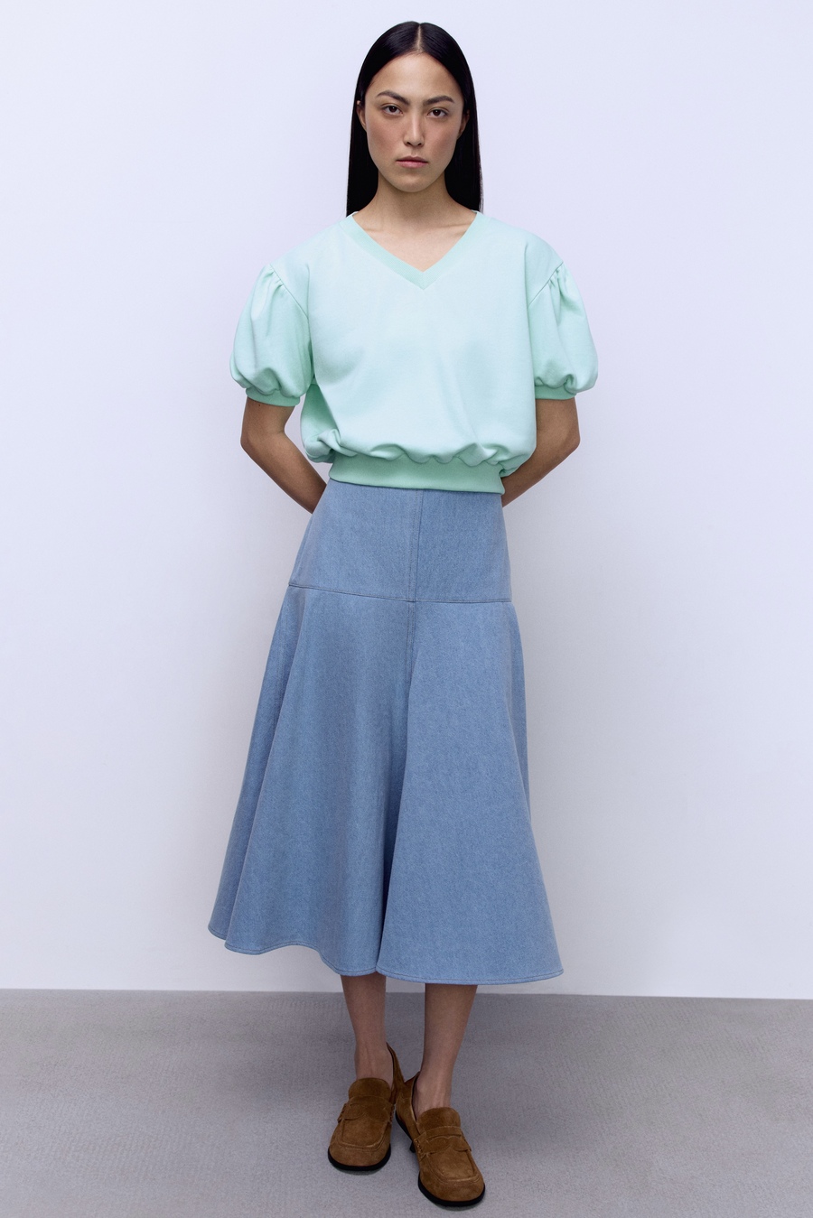 Юбка-тубина из жаккарда с накладной баской, голубой