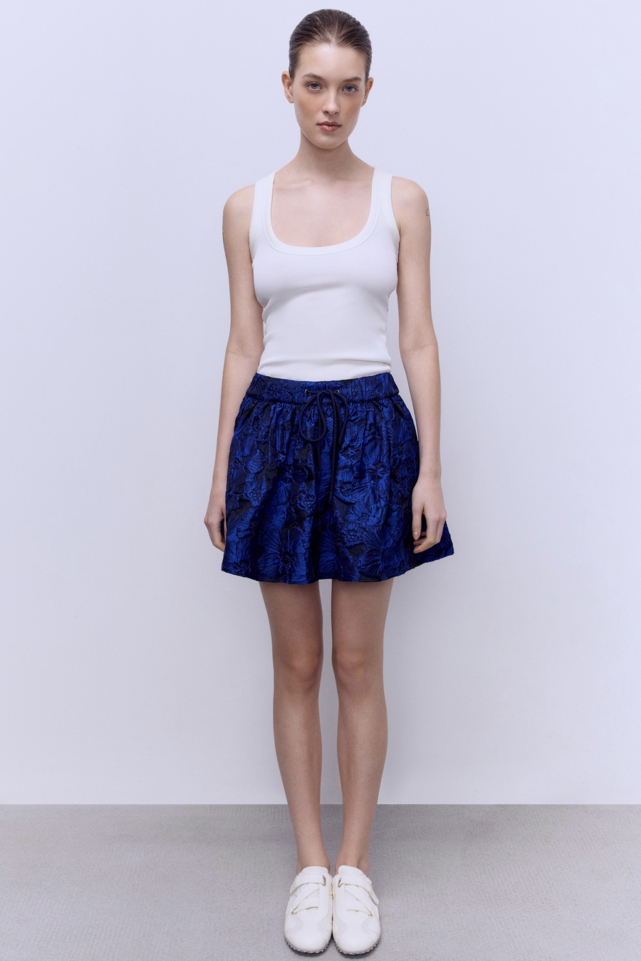Юбка-солнце мини из жаккарда на кулиске, синий