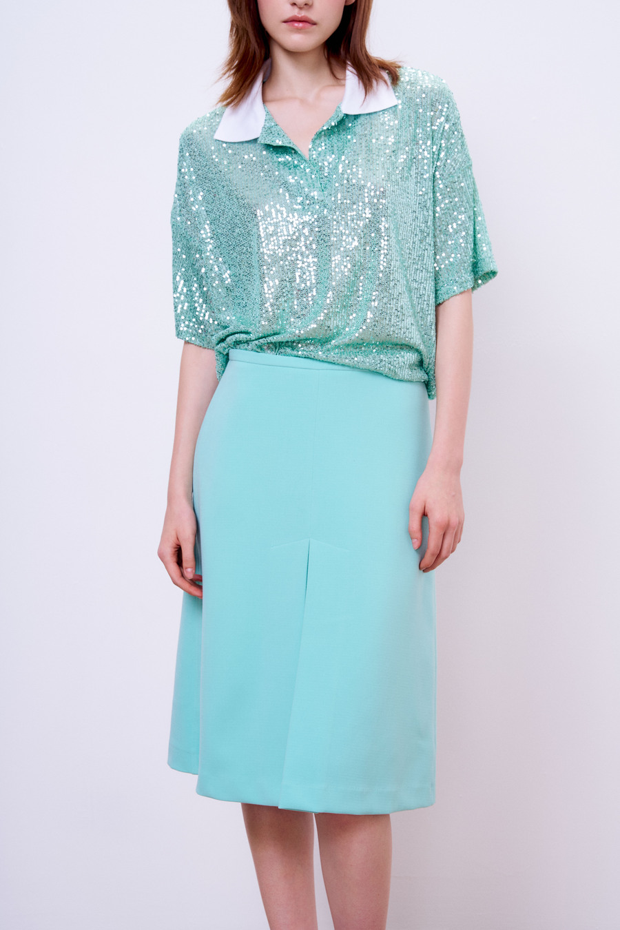 Юбка А-лайн из объемного итальянского кружева, мятный