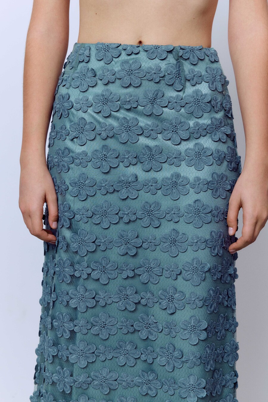 Нежное кружево этой юбки придаст образу очаровательности, а глубокий травянистый оттенок — изысканности. Это идеальный выбор для особых случаев и вечерних выходов.