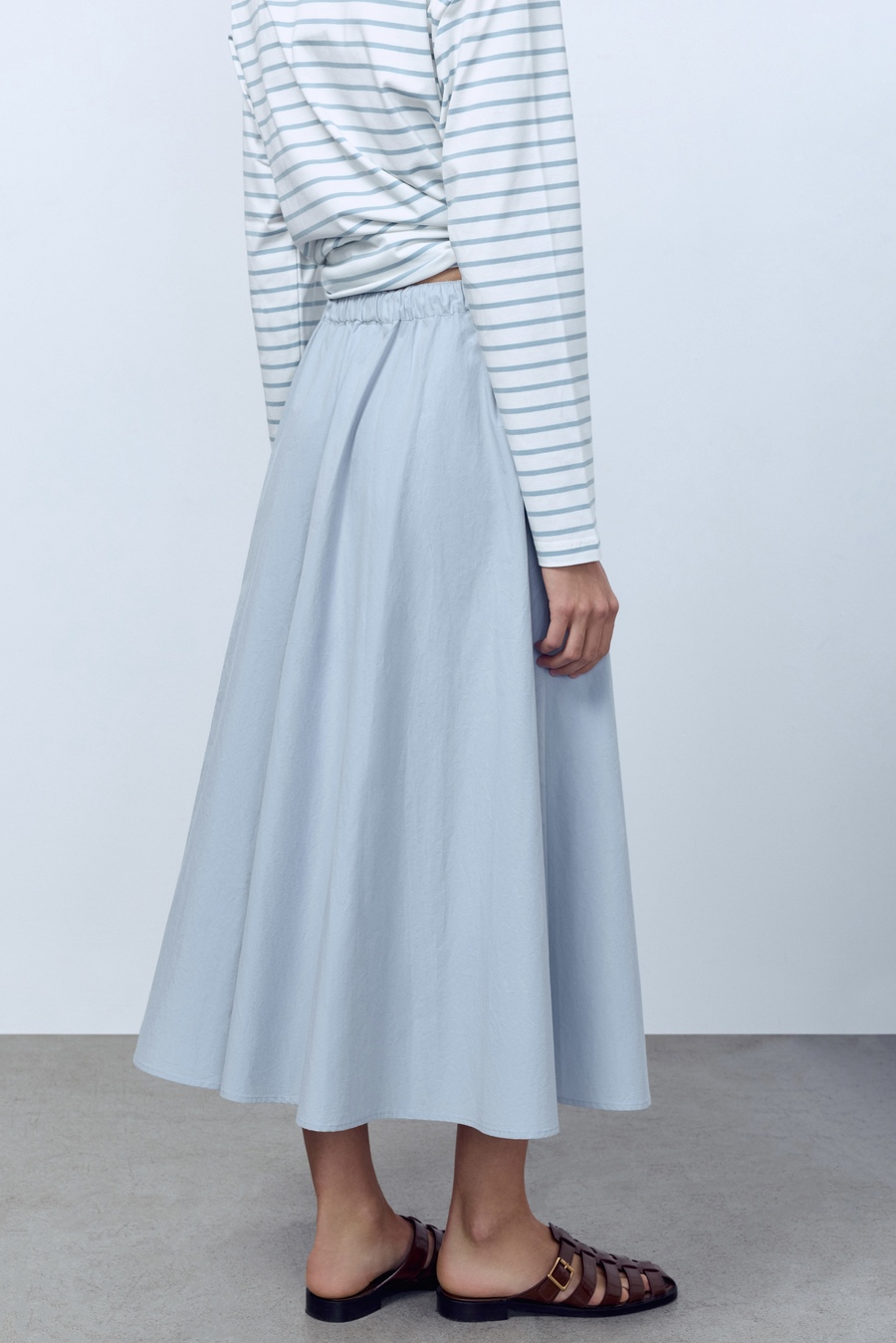 Лёгкость, движение, свобода — всё это про нашу юбку-солнце из благородного итальянского варёного хлопка. Она будто создана для того, чтобы кружиться в тёплом воздухе города или на побережье, где солнце отражается в каждой складке.