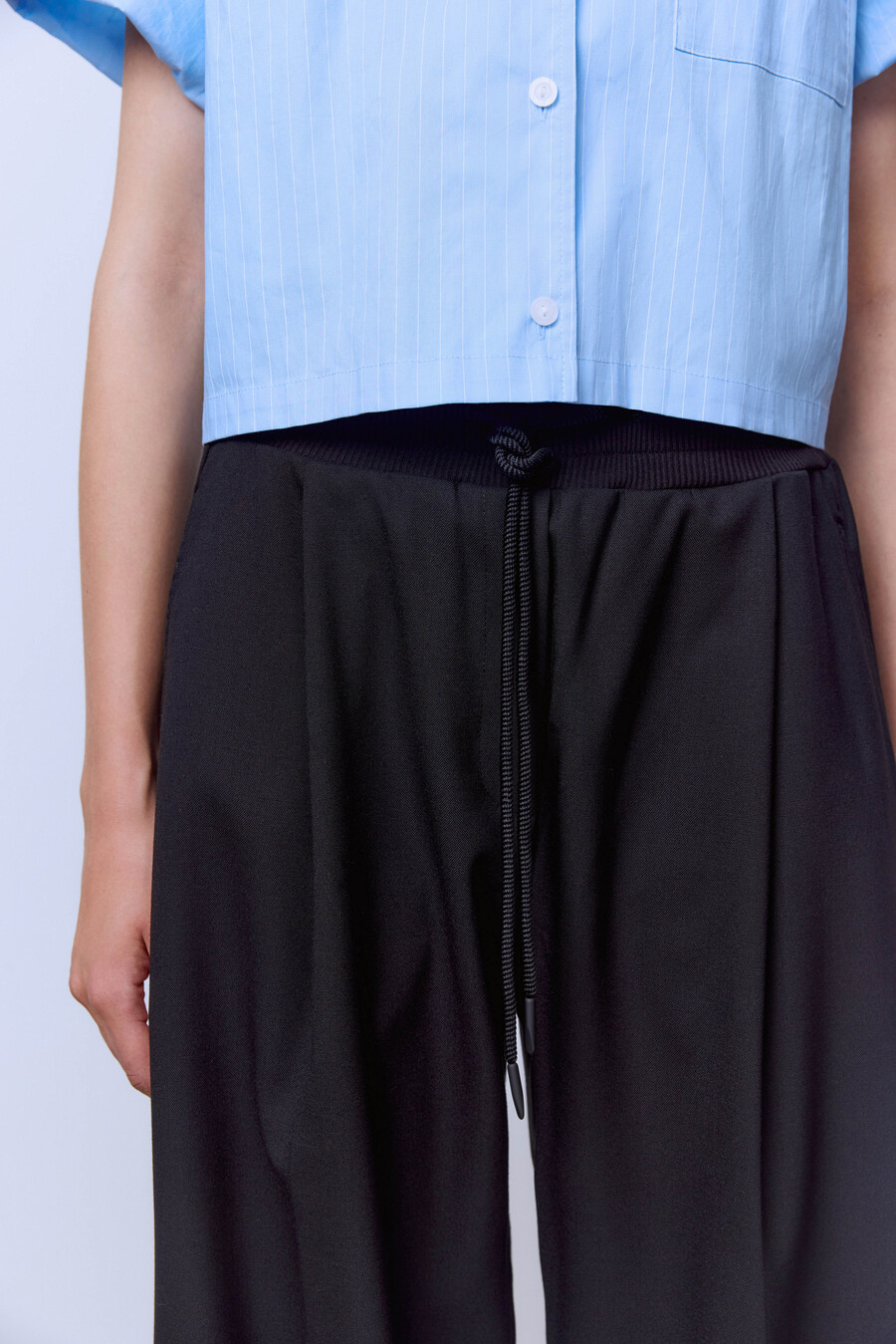 Брюки из итальянской премиальной шерсти Лана супер 100 на контрастной резинке, серый