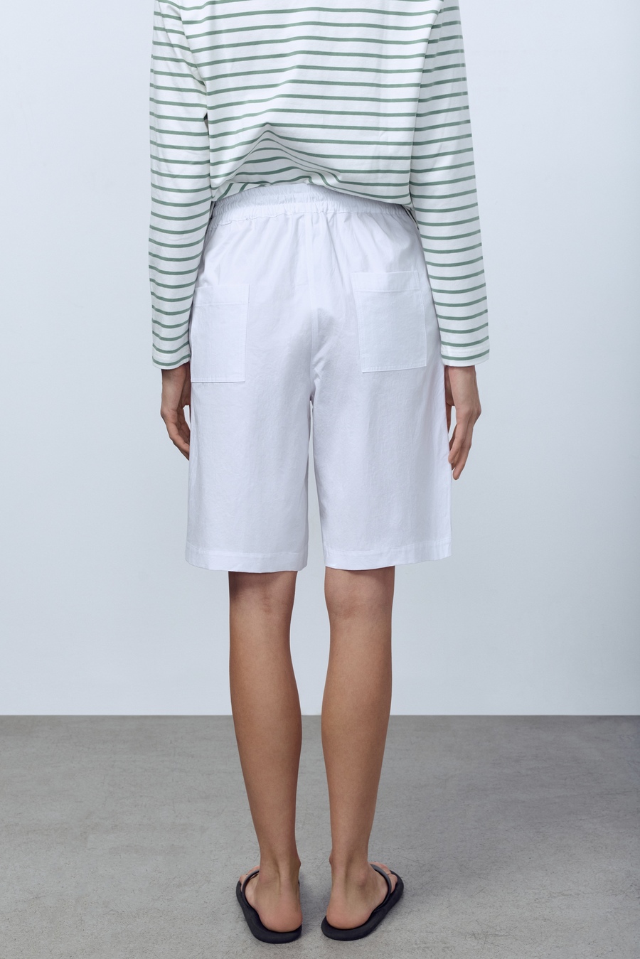 Если бы лето было вещью, оно выглядело бы именно так. Бермуды из премиального итальянского варёного хлопка — это расслабленность, доведённая до совершенства. Материал с характерной фактурой мягко держит форму, будто создан для неспешных прогулок по набережной и кофе на террасе.