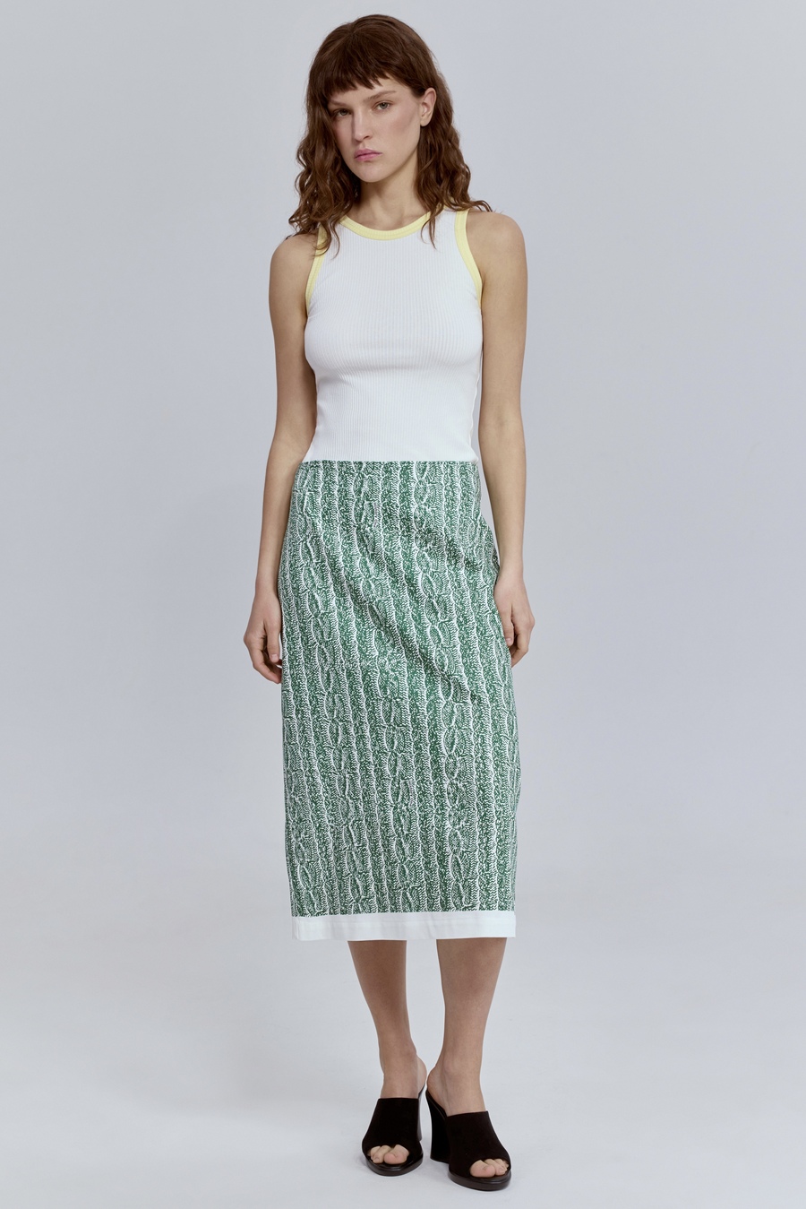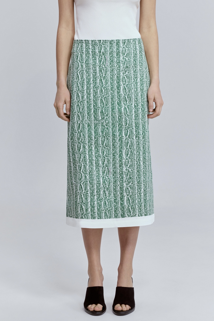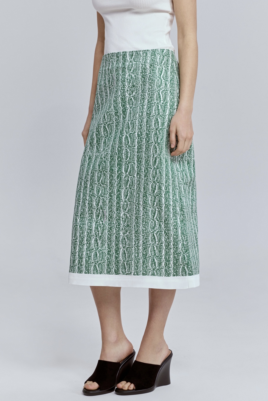 Юбка прямая из лёгкого денима с принтом «косы», зелёный