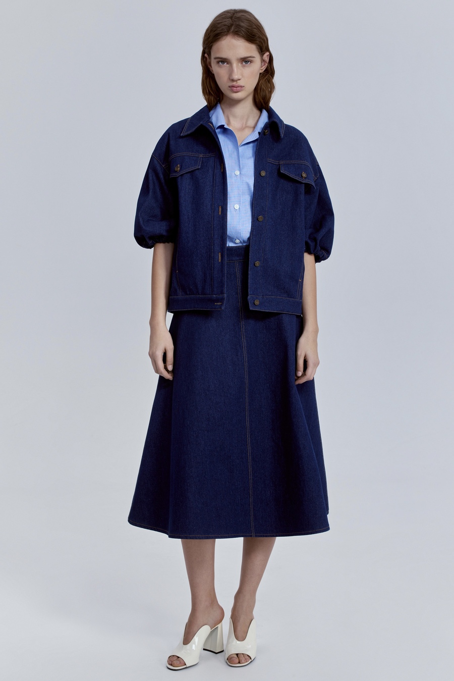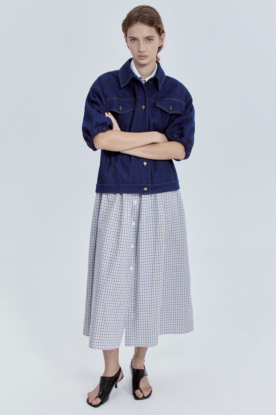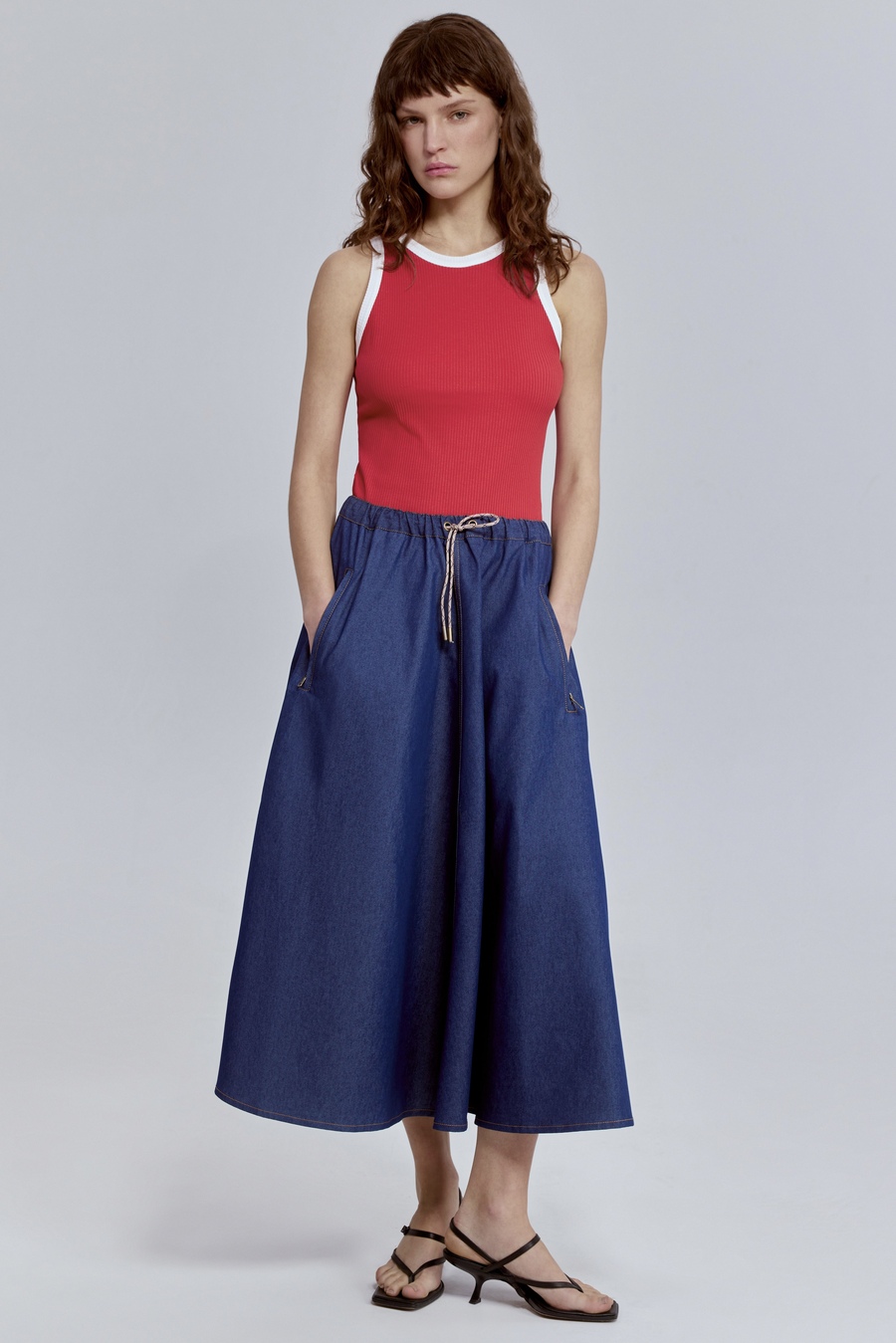 Юбка прямая из лёгкого денима с принтом «косы», зелёный