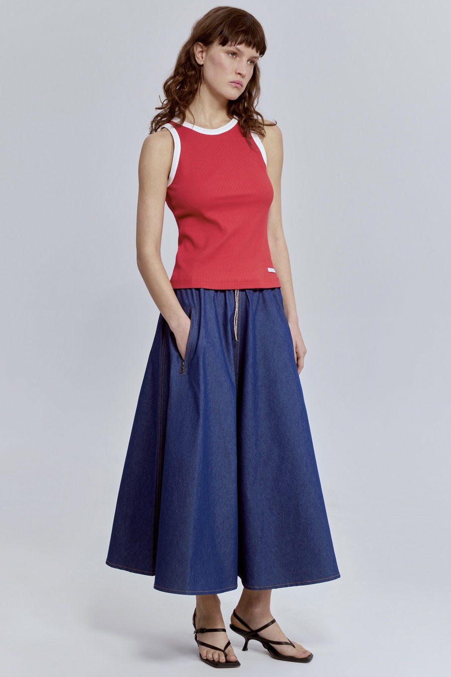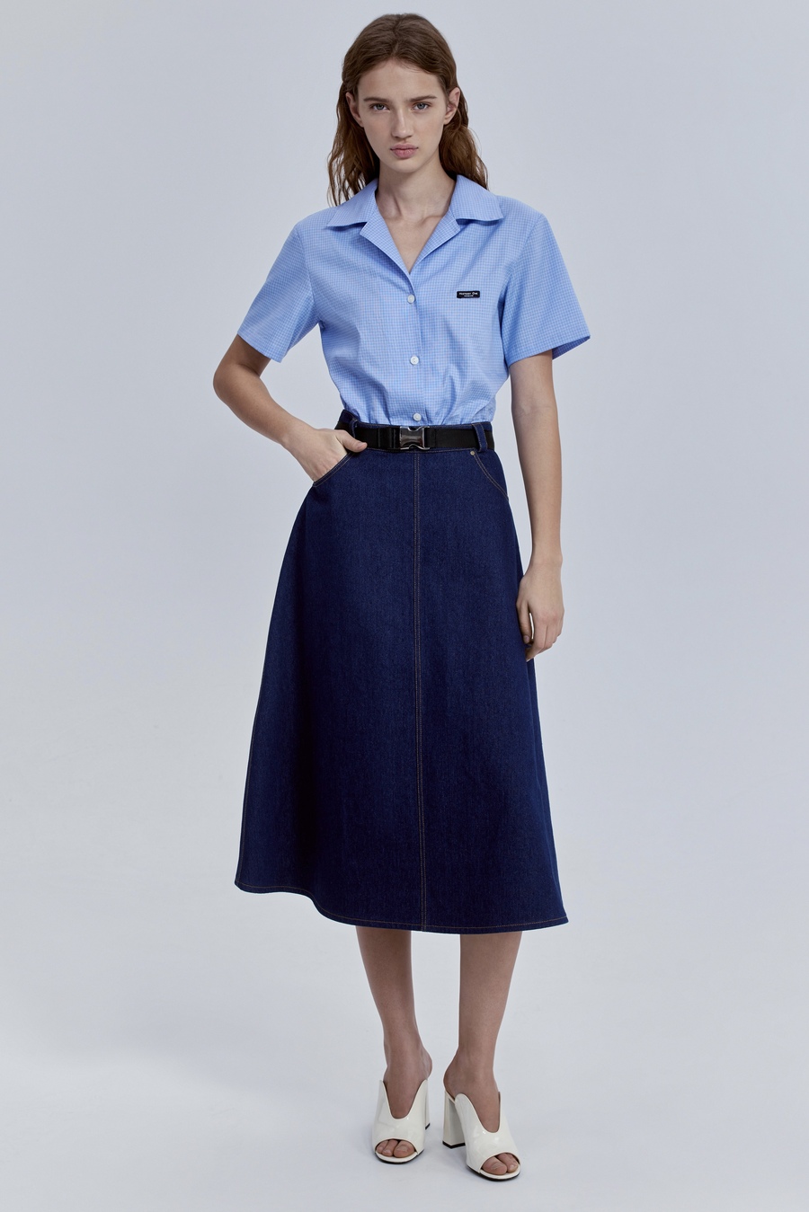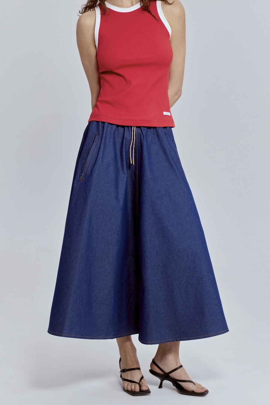 Юбка прямая из лёгкого денима с принтом «кролики», синий
