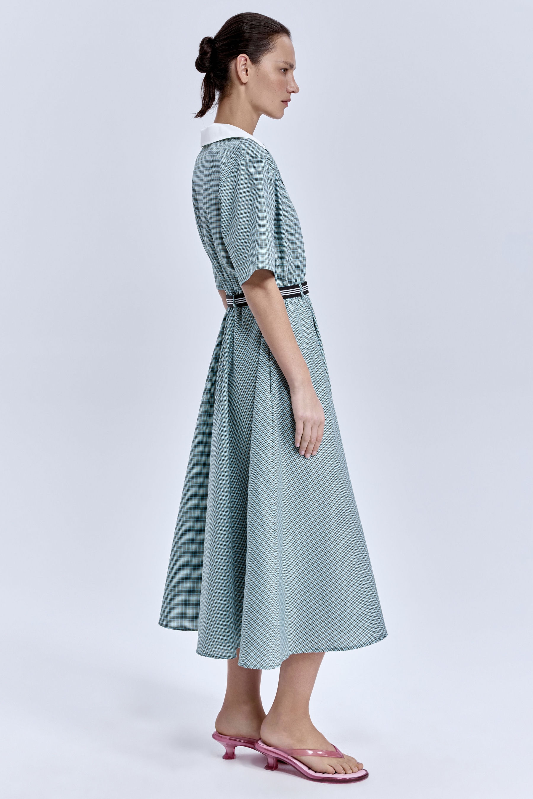 Платье в клетку из итальянского хлопка — современная интерпретация классики. Клетка добавляет образу выразительности, а натуральная ткань дарит комфорт на весь день. Лаконичный крой и аккуратная посадка делают это платье универсальной основой гардероба, которая легко впишется в ритм города.