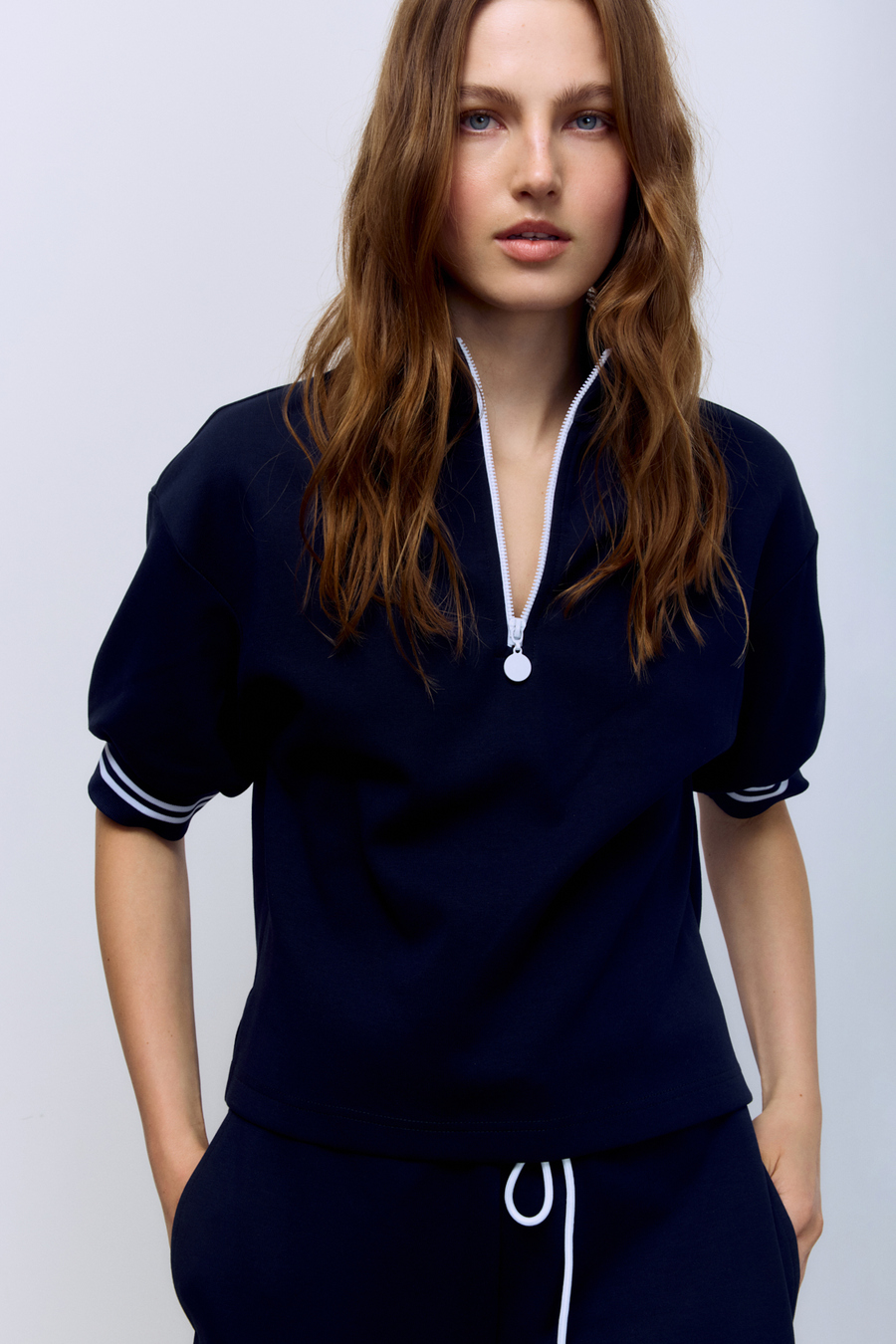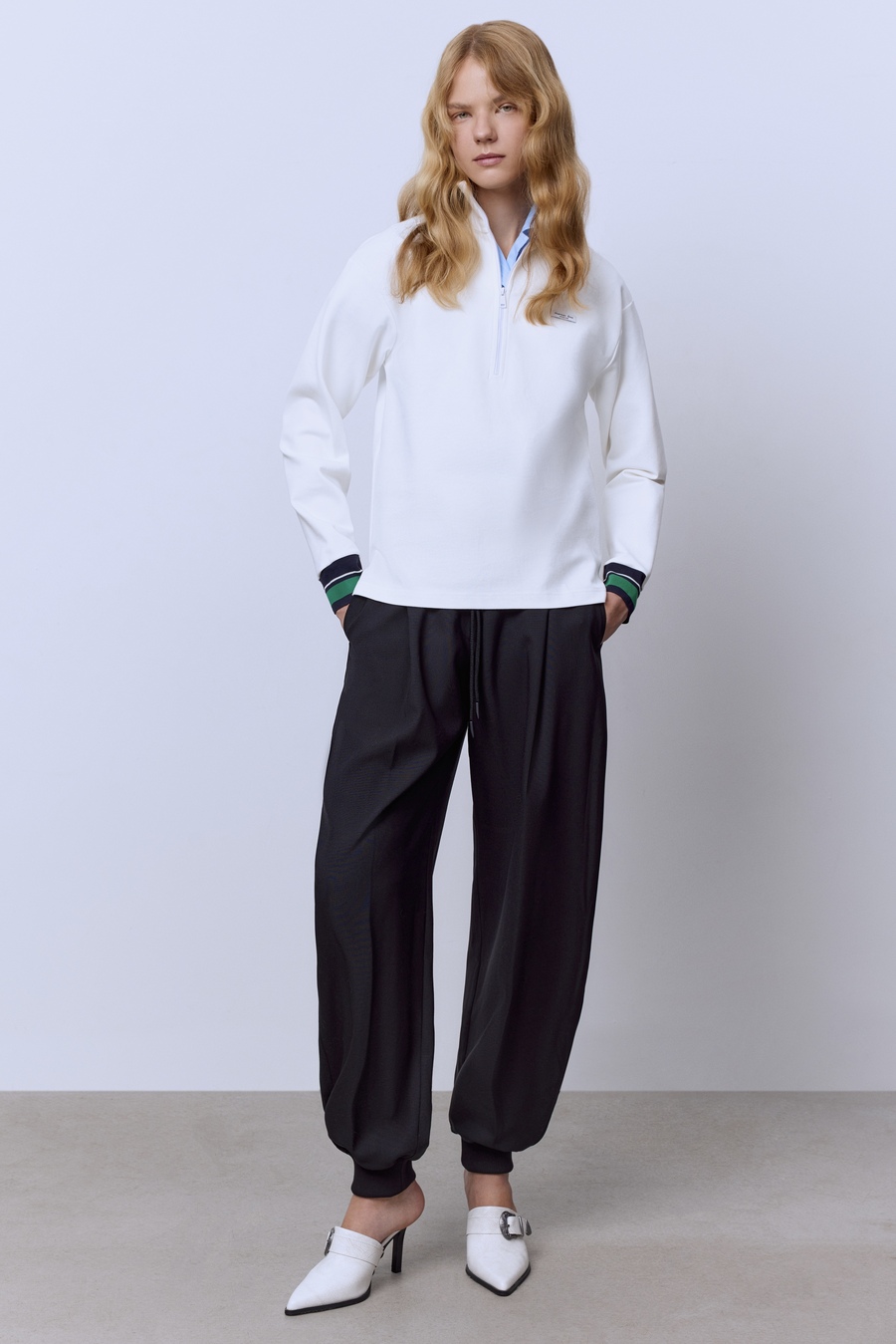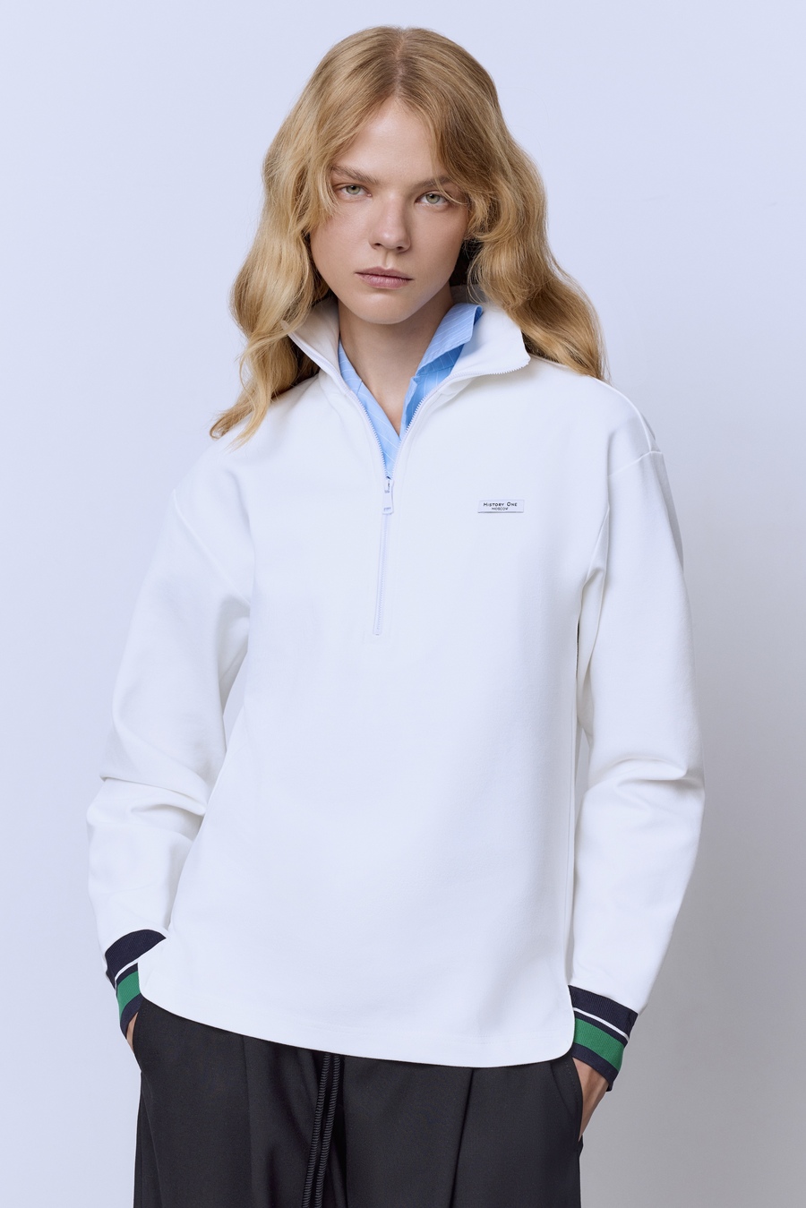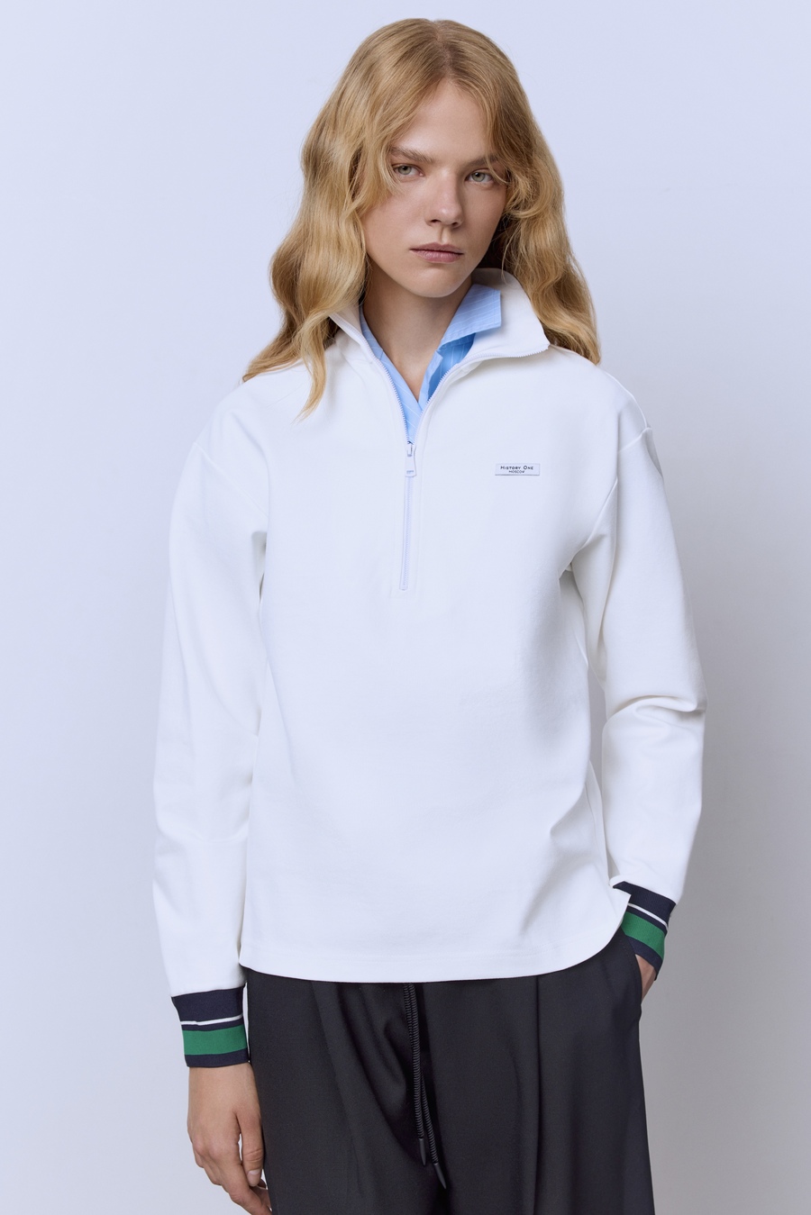 Поло на молнии с контрастными подвязами, белый