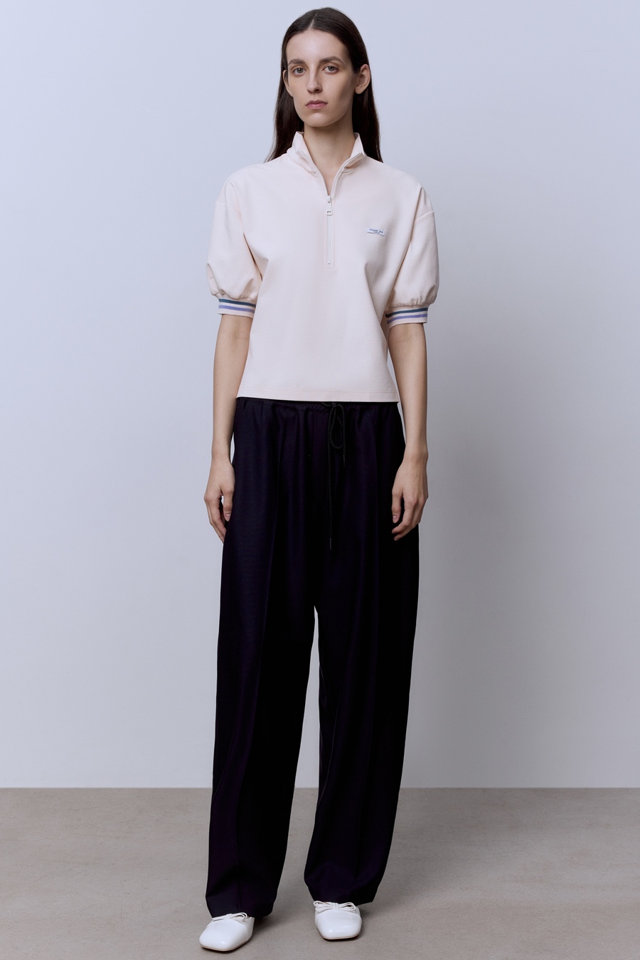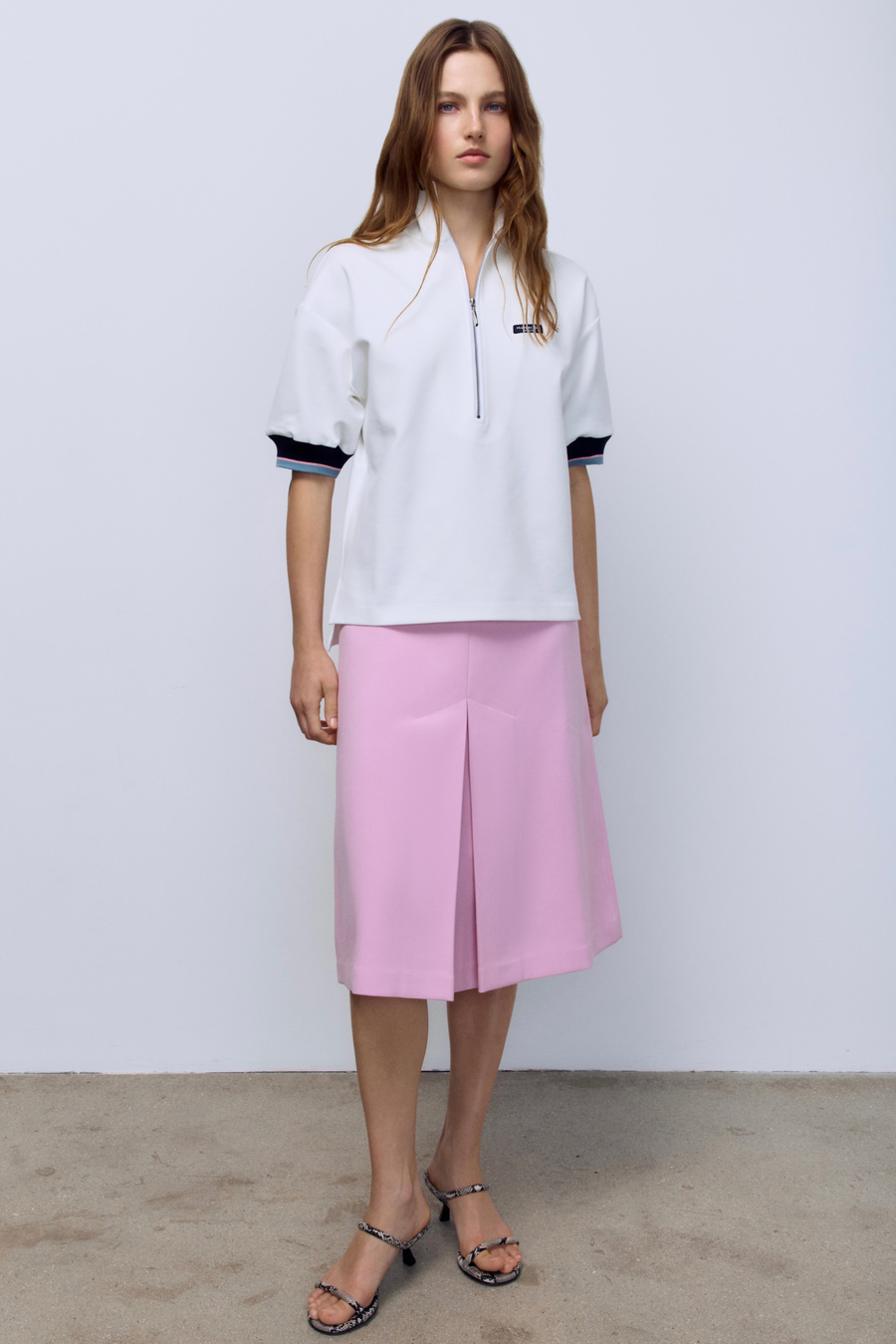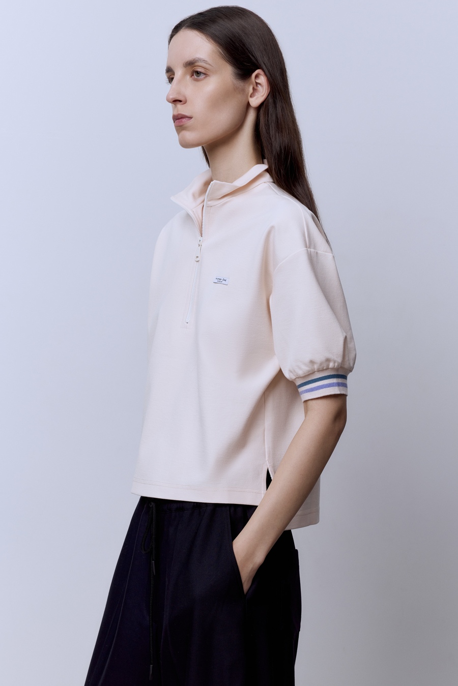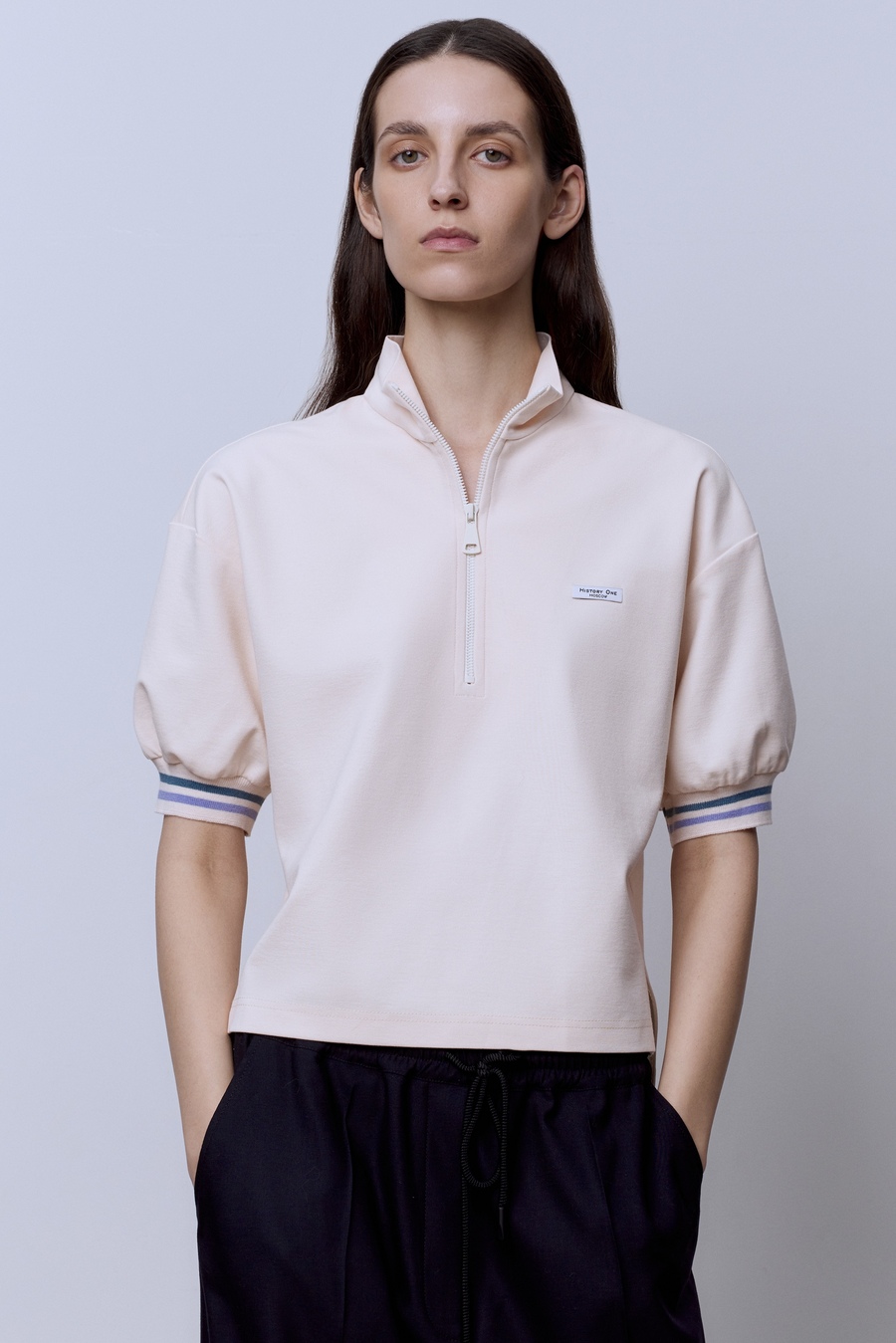 Поло на молнии с контрастными подвязами, белый