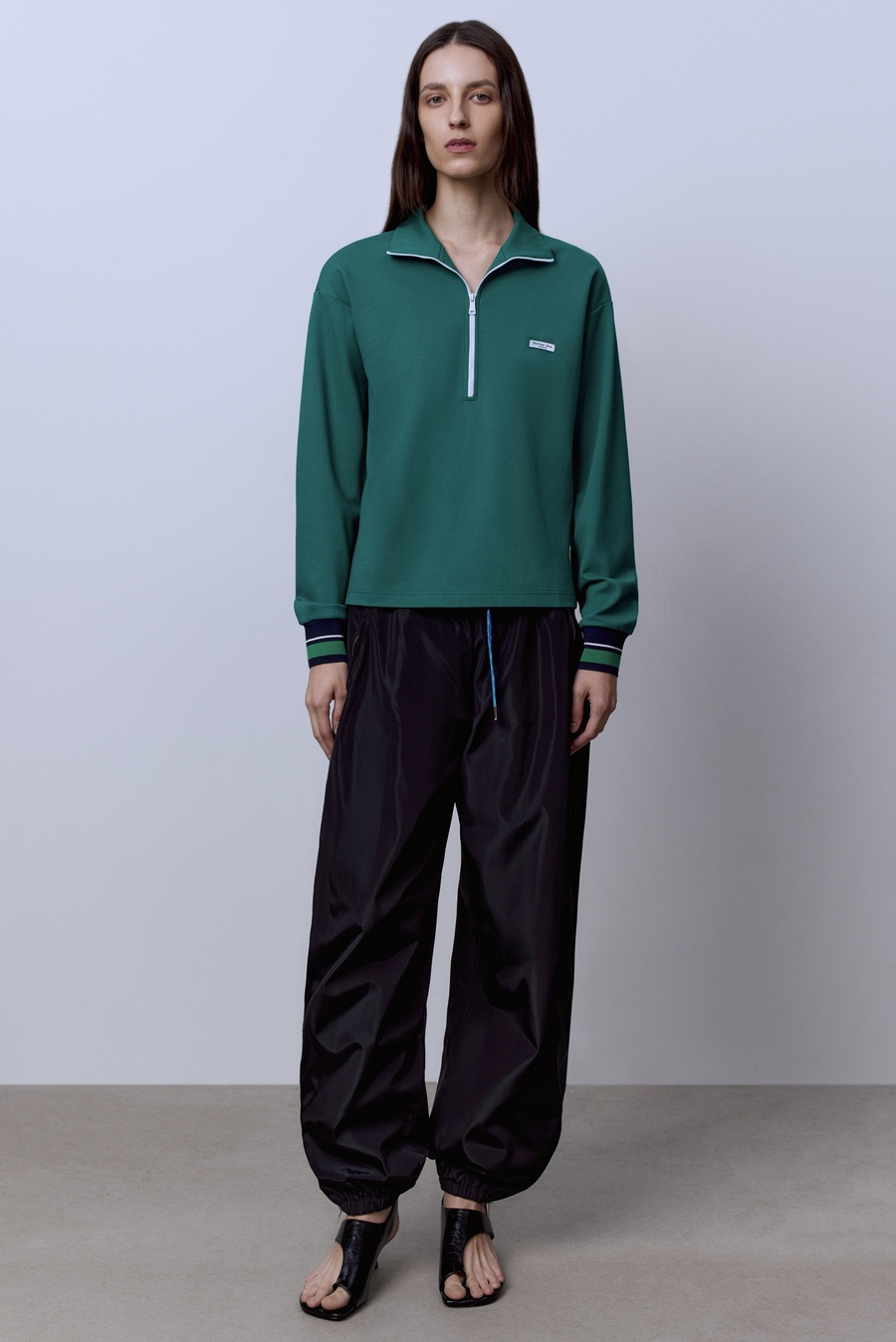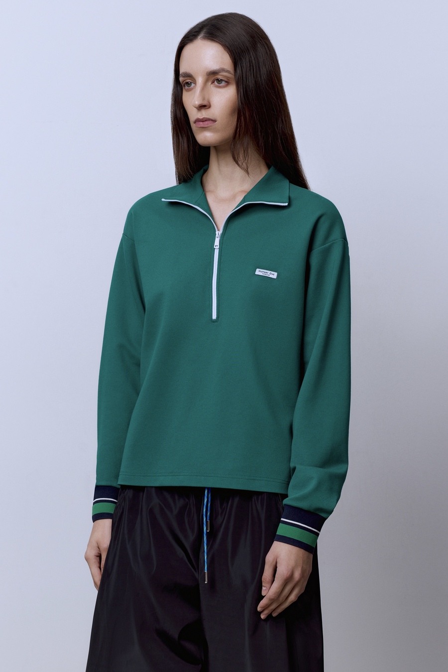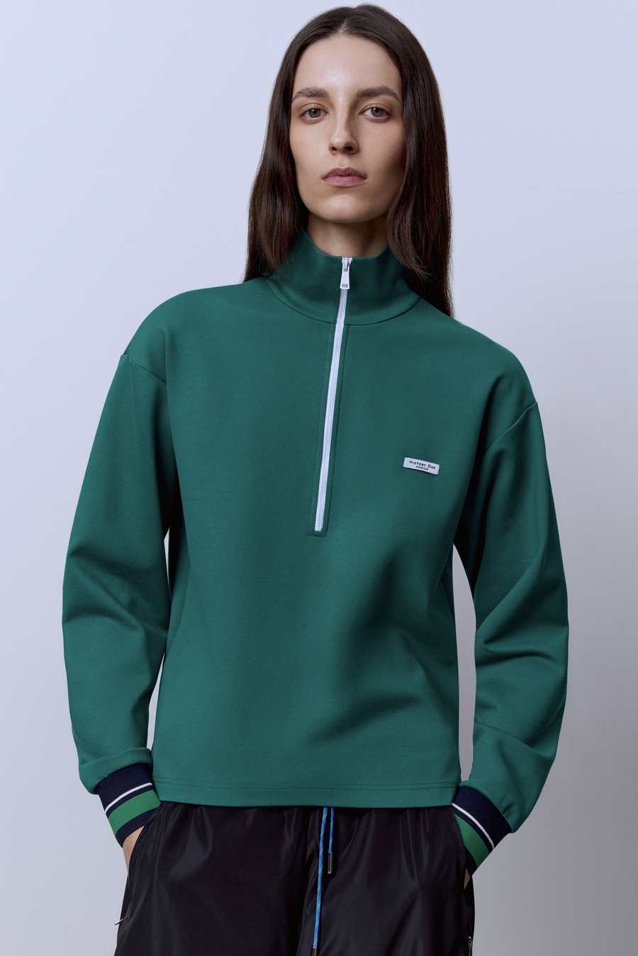Поло на молнии с длинным рукавом, зелёный
