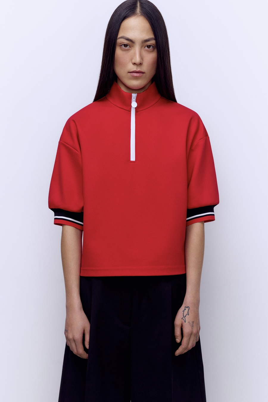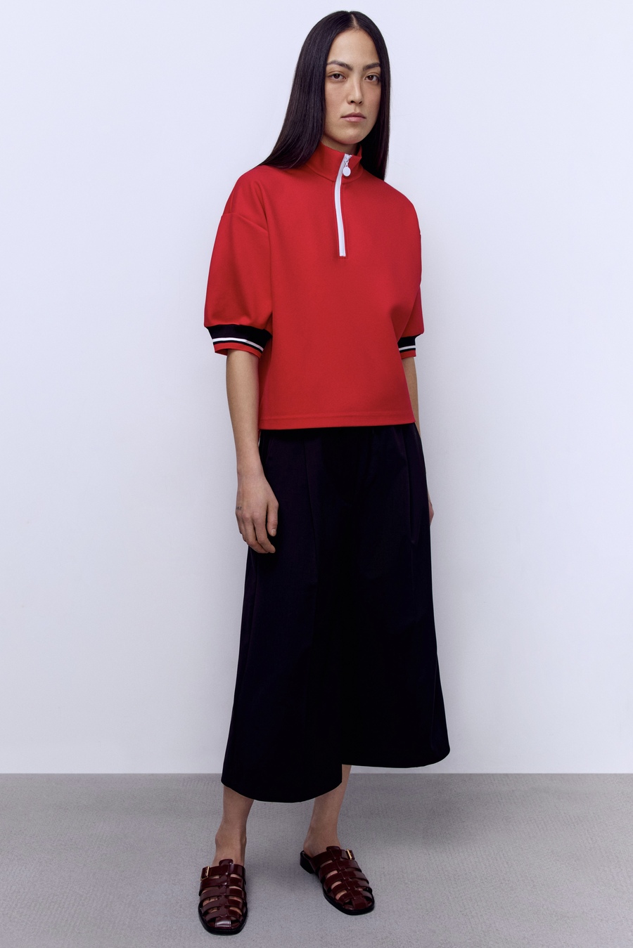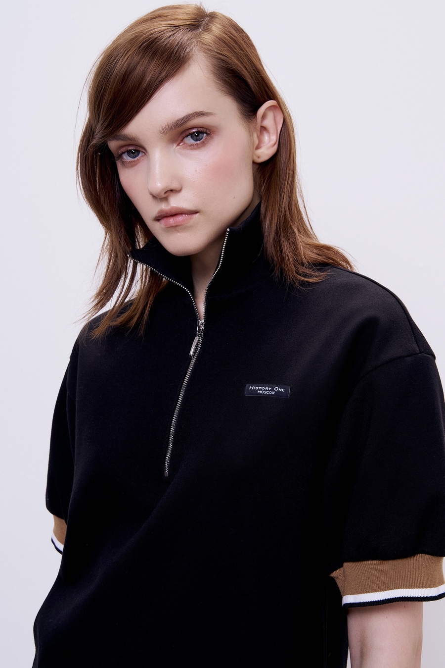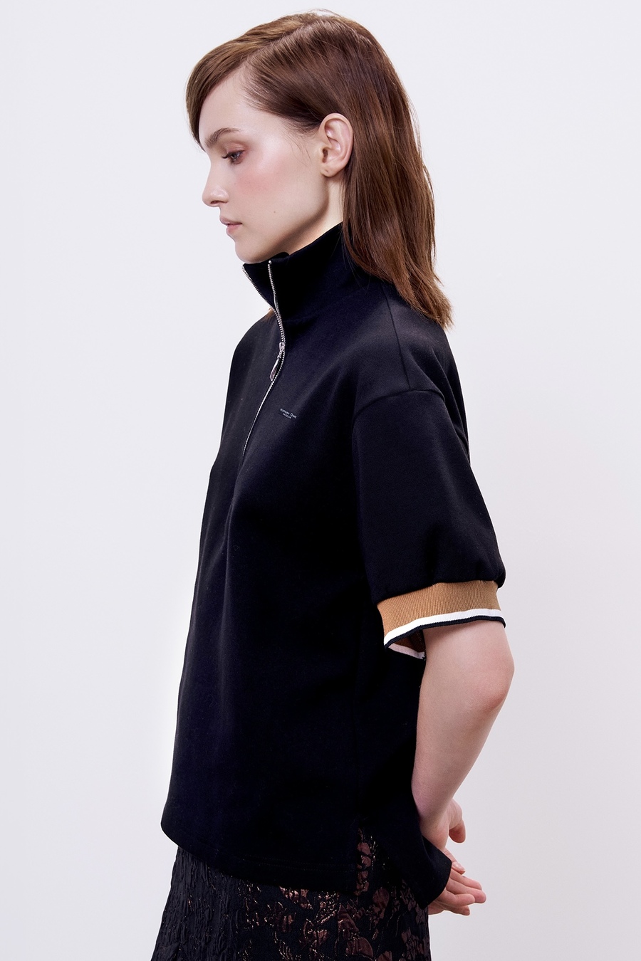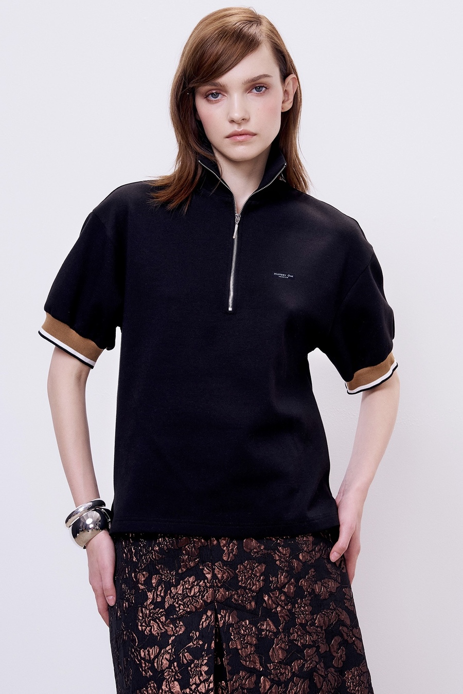 Поло на молнии с контрастными манжетами, черный