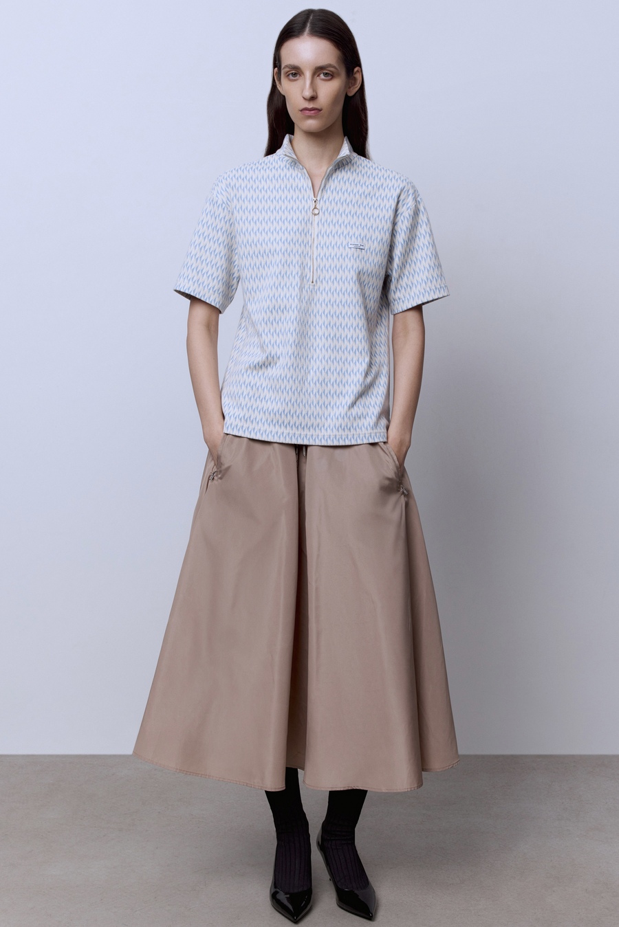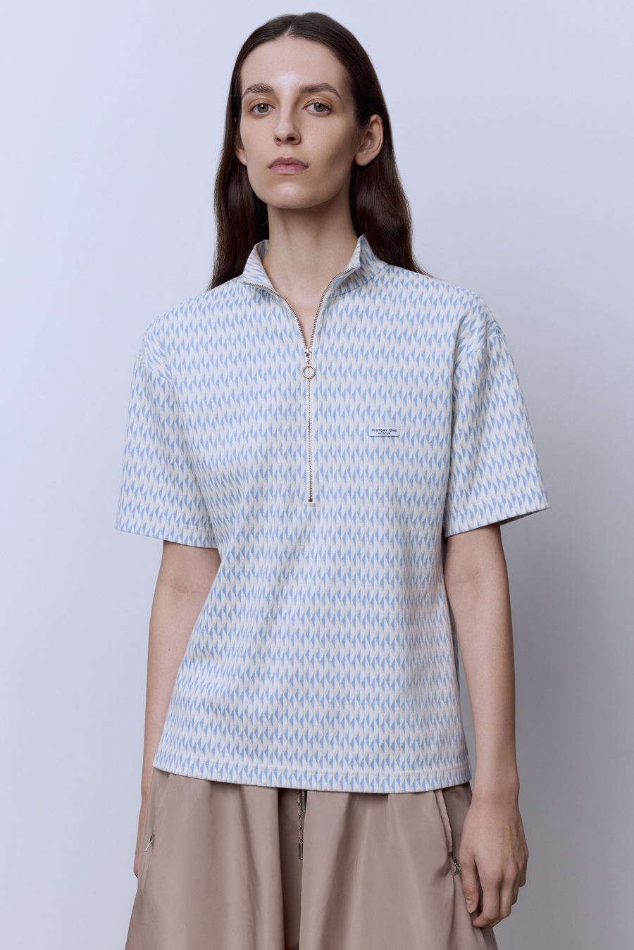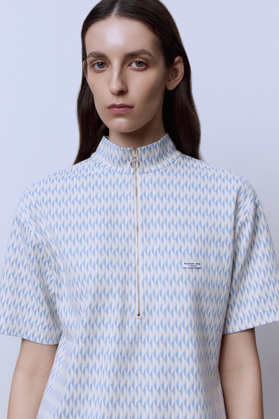 Поло на молнии из джерси жаккард, голубой