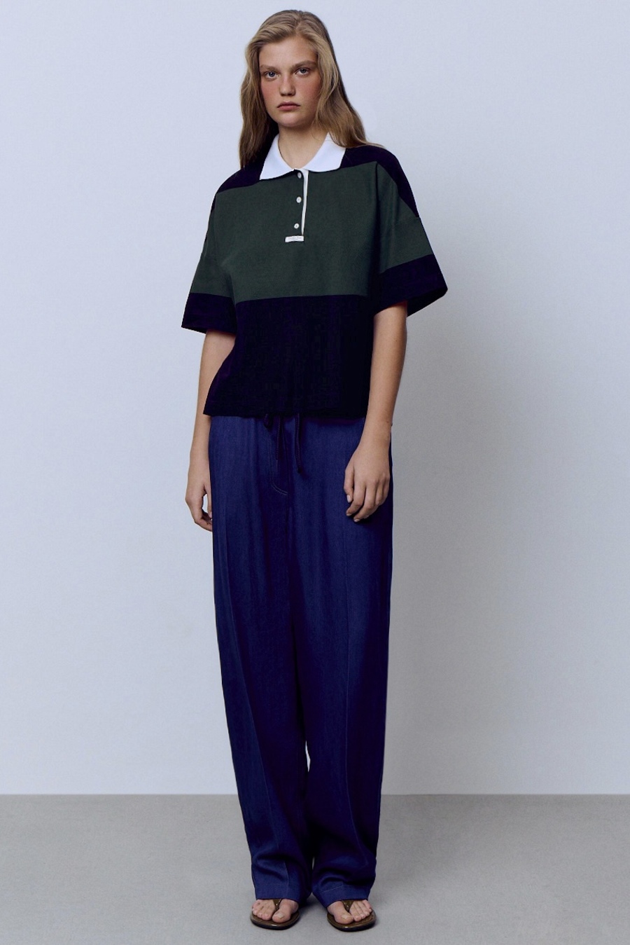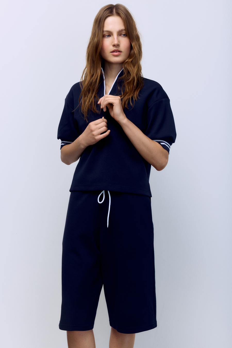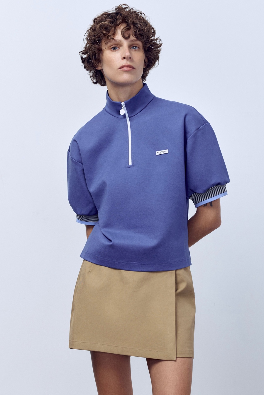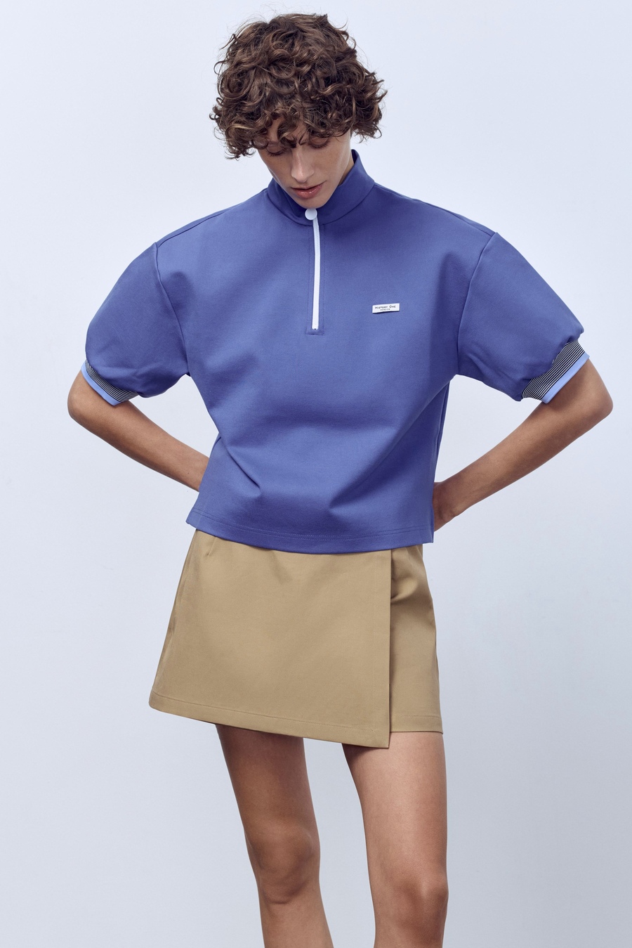 Поло на молнии с контрастными подвязами, васильковый
