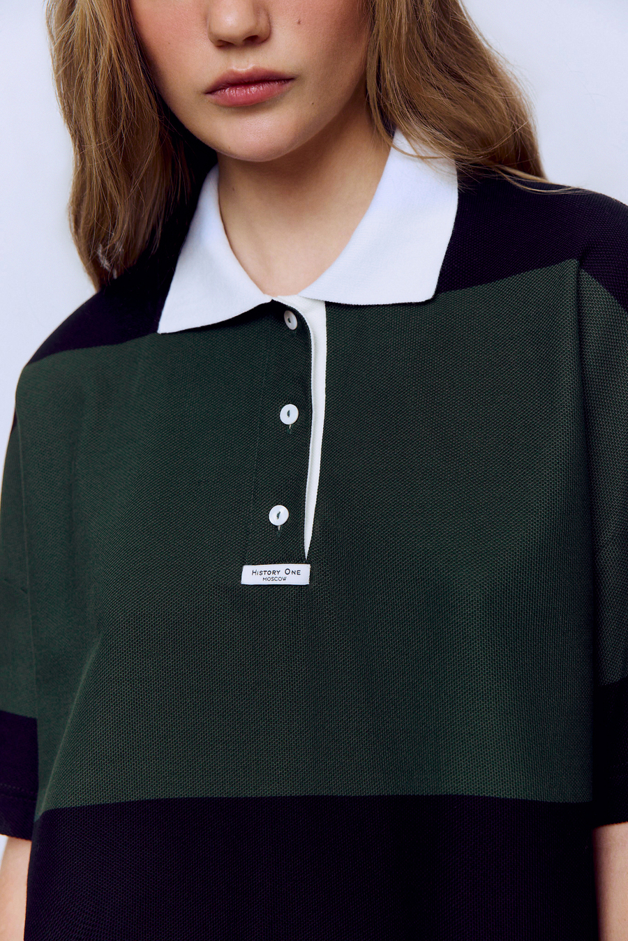Поло пике с контрастным воротником, зелёный-чёрный