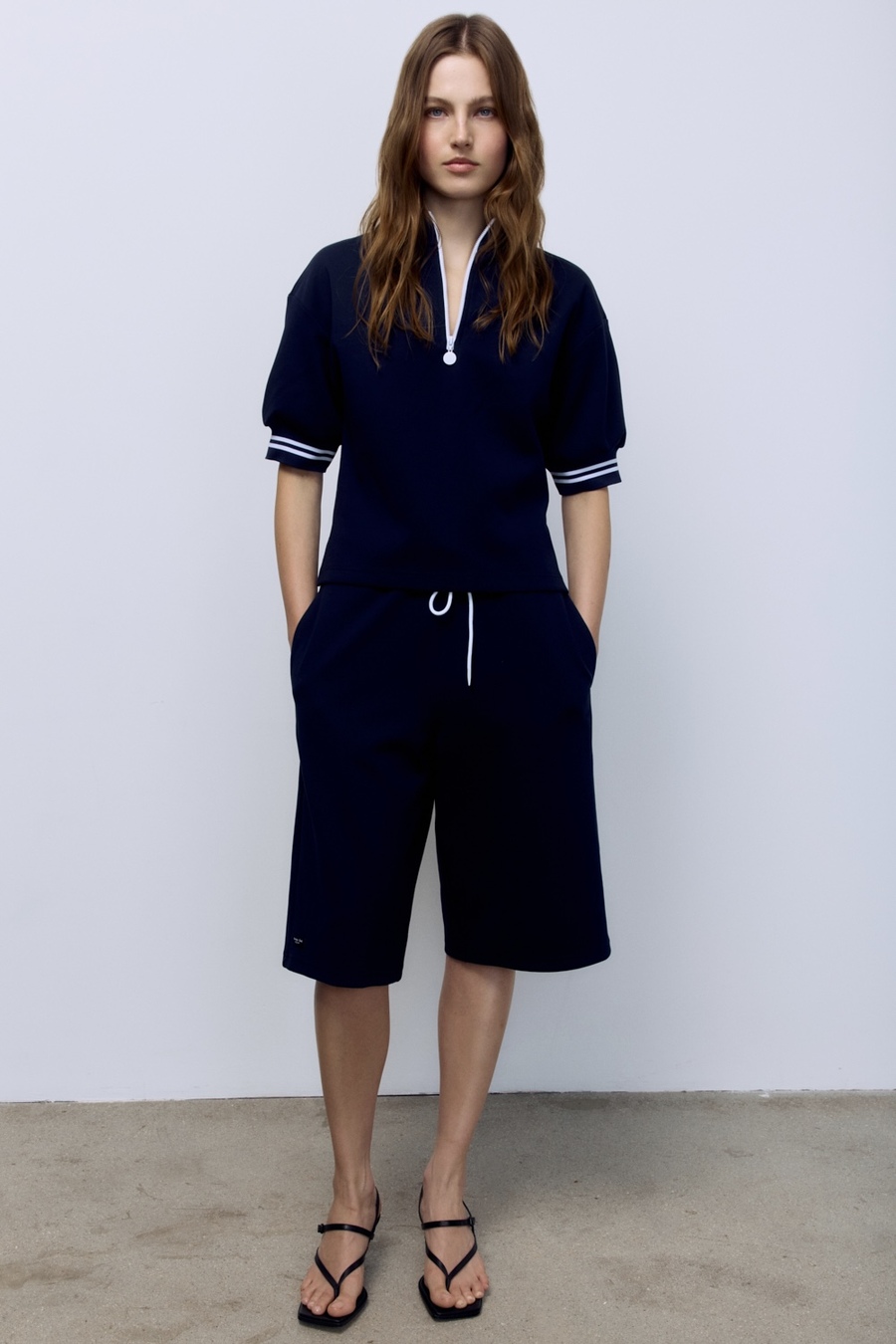 Поло на молнии с контрастными подвязами, синий