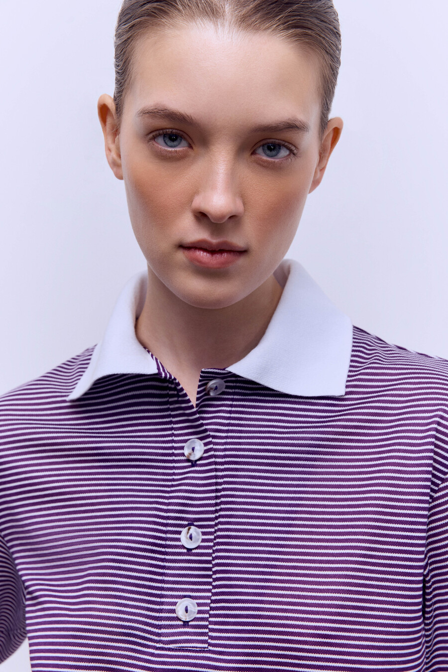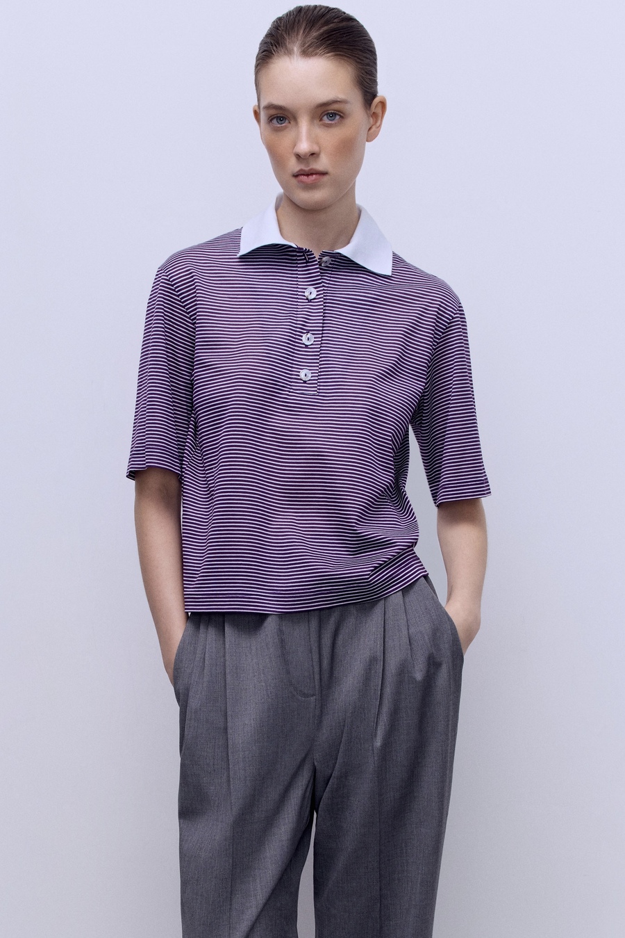 Поло из пике укороченное, фиолетовый