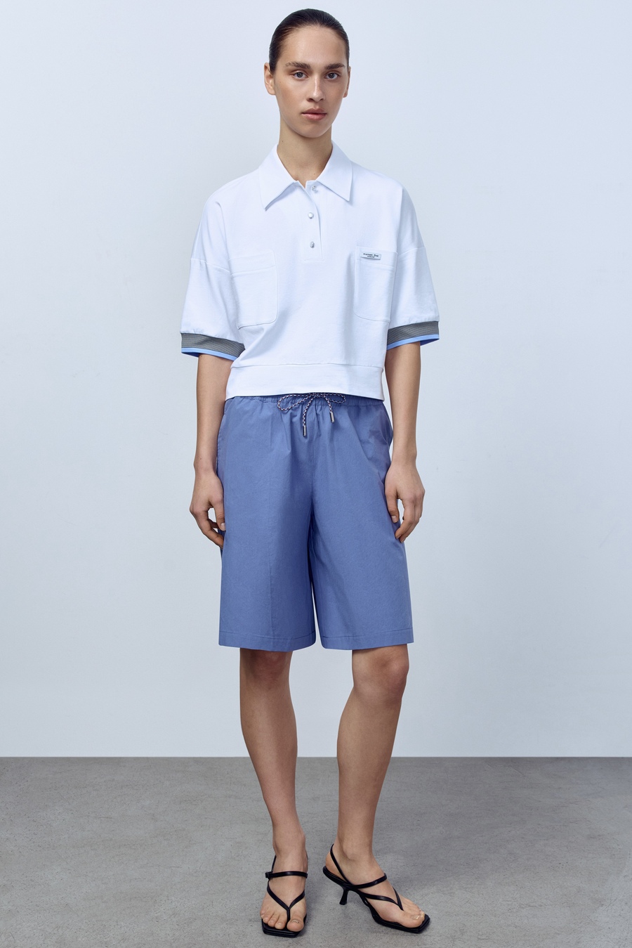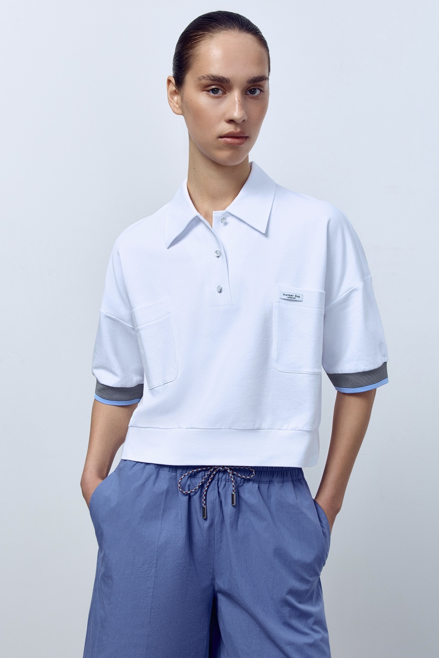 Поло укороченное с карманами, белый
