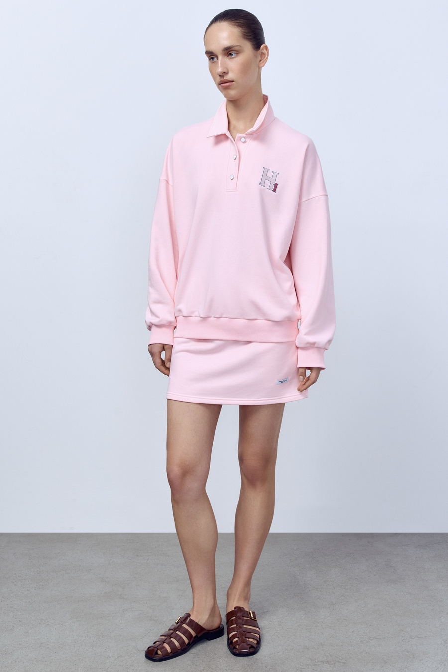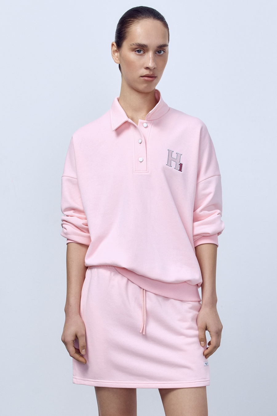 Поло с длинным рукавом из футера, розовый