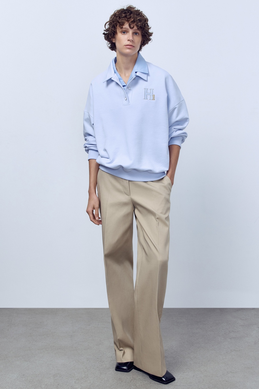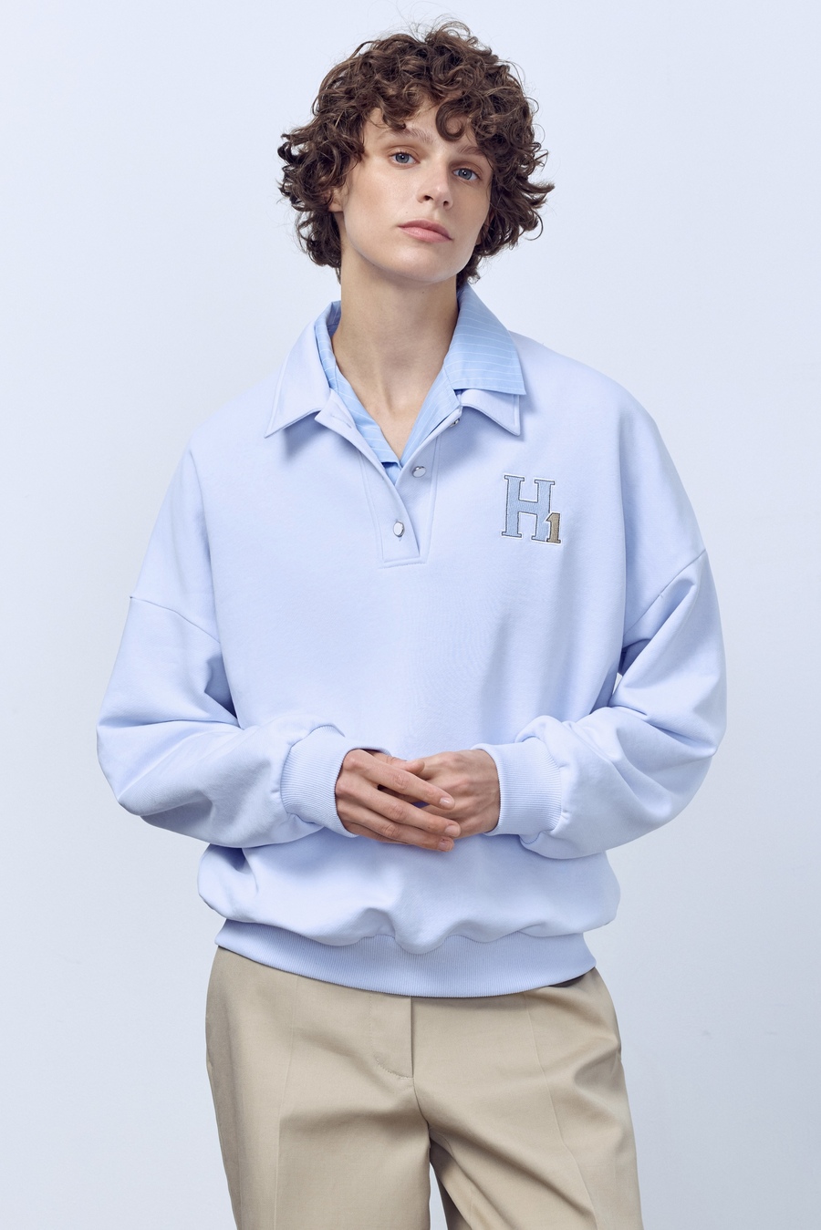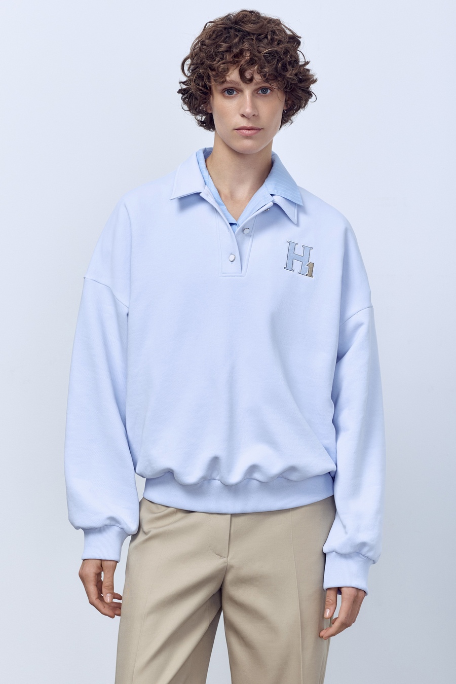 Поло с длинным рукавом из футера, голубой