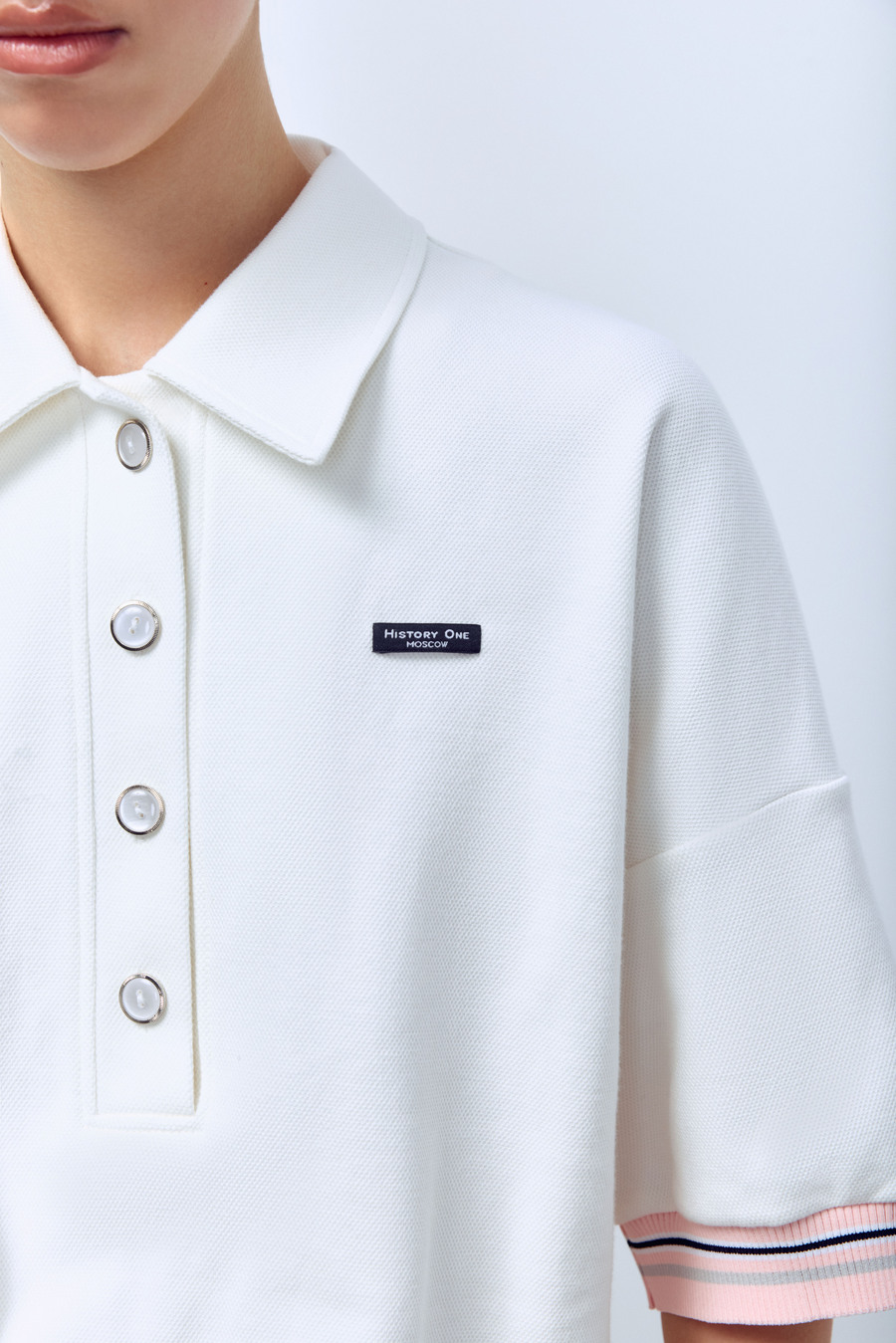 Поло из пике с контрастным подвязом, молочный
