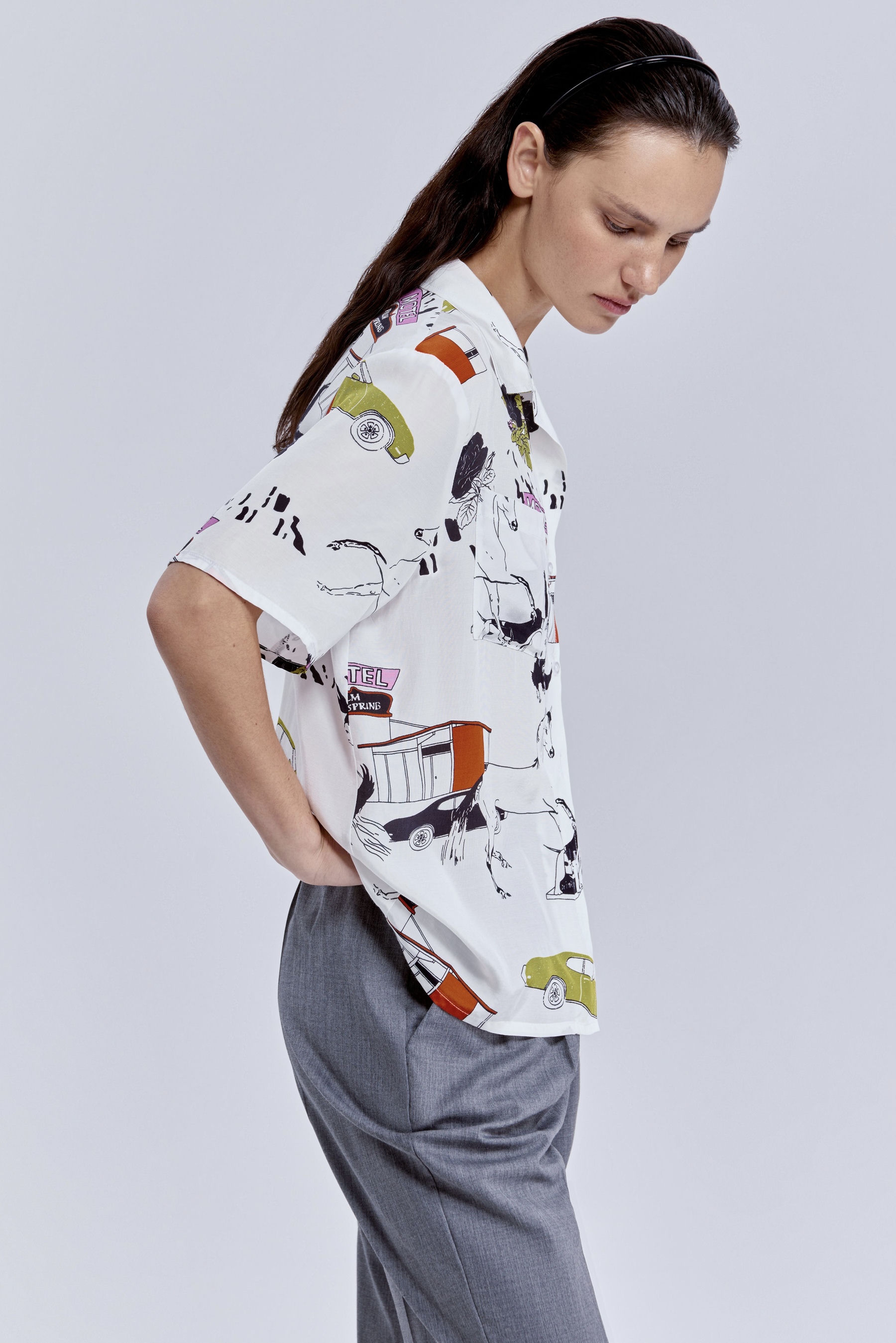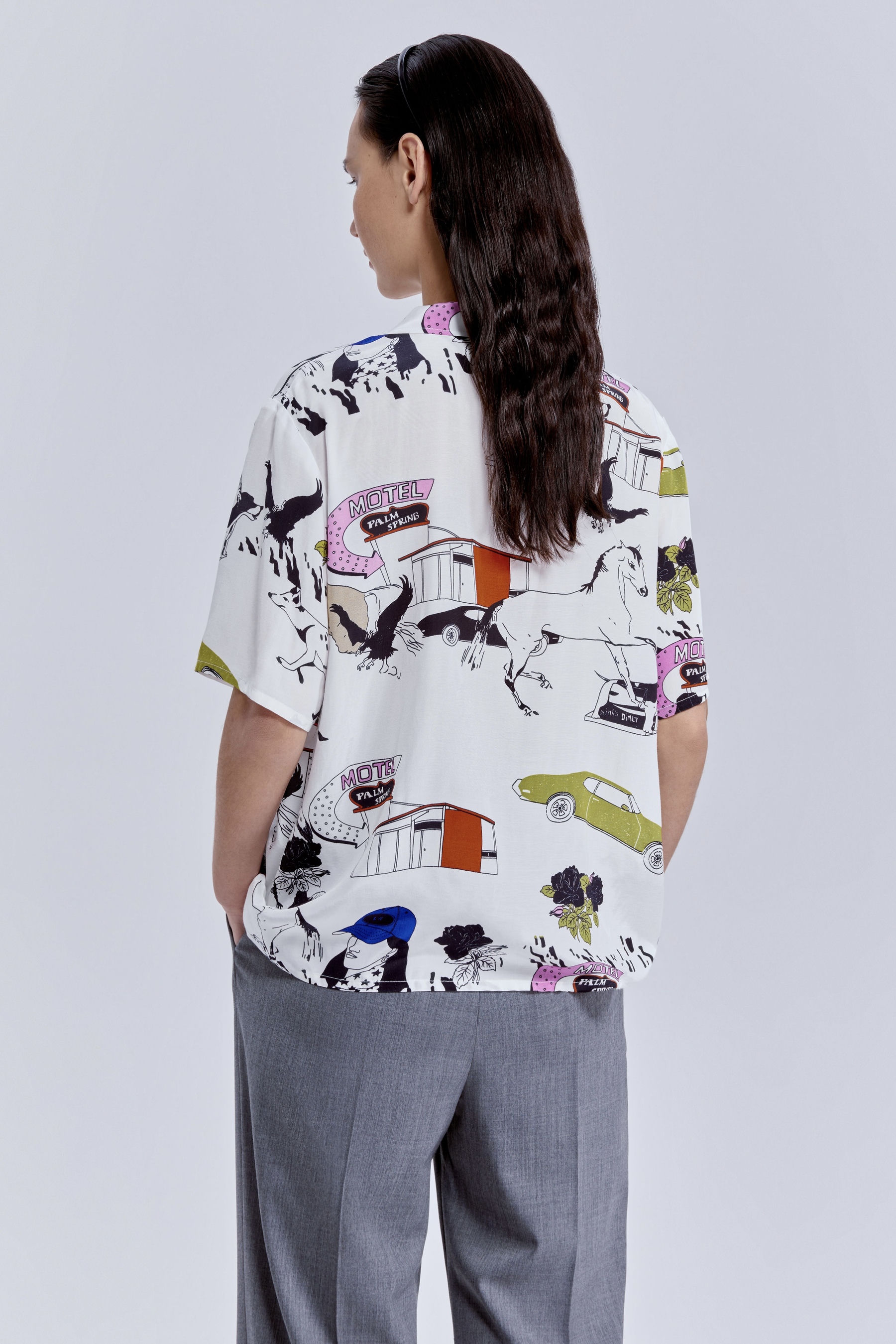 Рубашка бокси с принтом «комиксы» — когда ваш образ говорит громче слов. Свободный крой даёт ощущение движения и воздуха, а графичный принт собирает взгляды, как кадры на страницах любимого журнала.