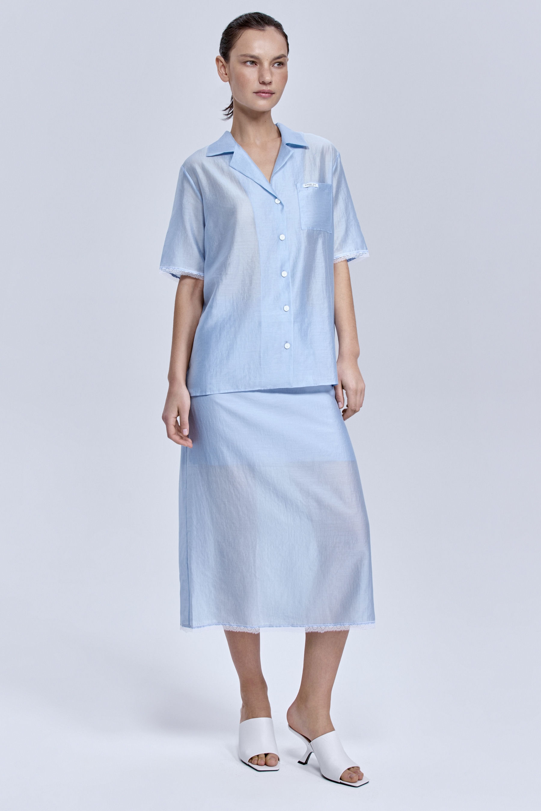 Невесомая рубашка из батистовой вуали с дерзким настроением большого города. Полупрозрачная, свободная, она двигается в вашем ритме и легко меняет характер — от мягкой утончённости до чистого бунта. Носите как хотите. Правила здесь — ваши.