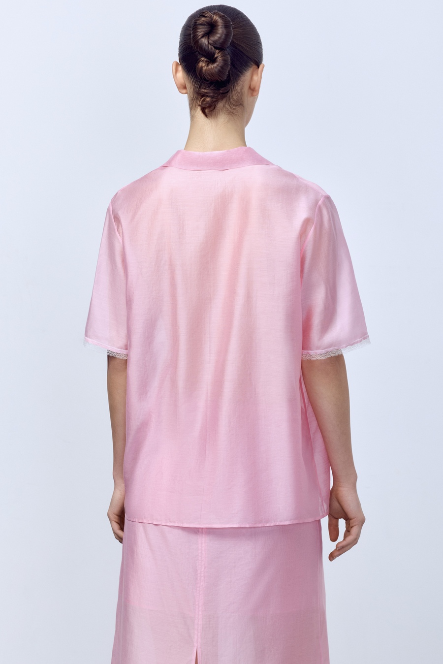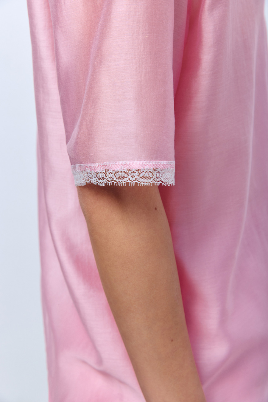 Рубашка из батистовой вуали с кружевом, розовый