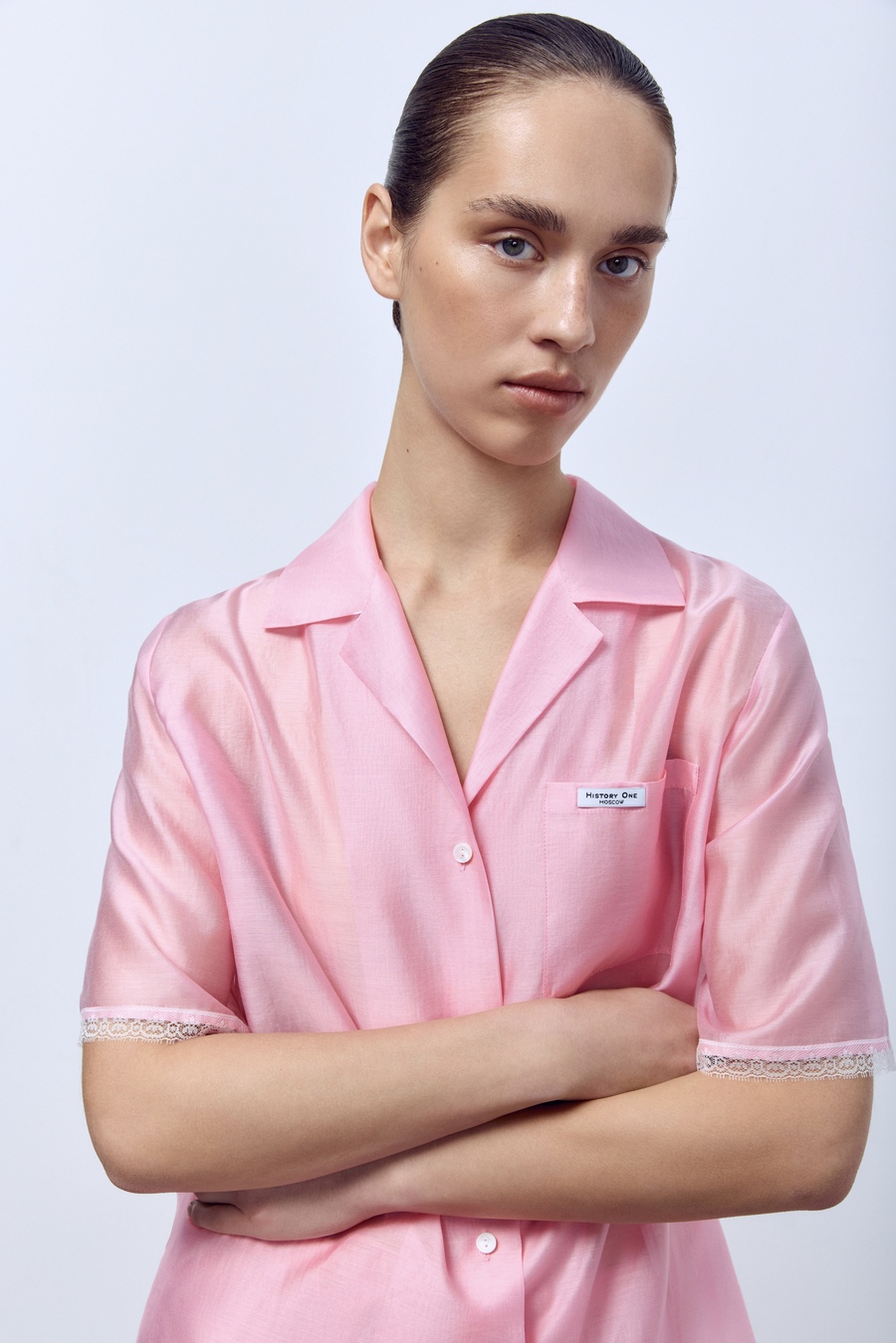Воздушная, почти невесомая, она создана не просто для того, чтобы носить — в ней хочется жить. Прозрачная, женственная, — эта рубашка играет на тонкой грани между классикой и легкой провокацией.