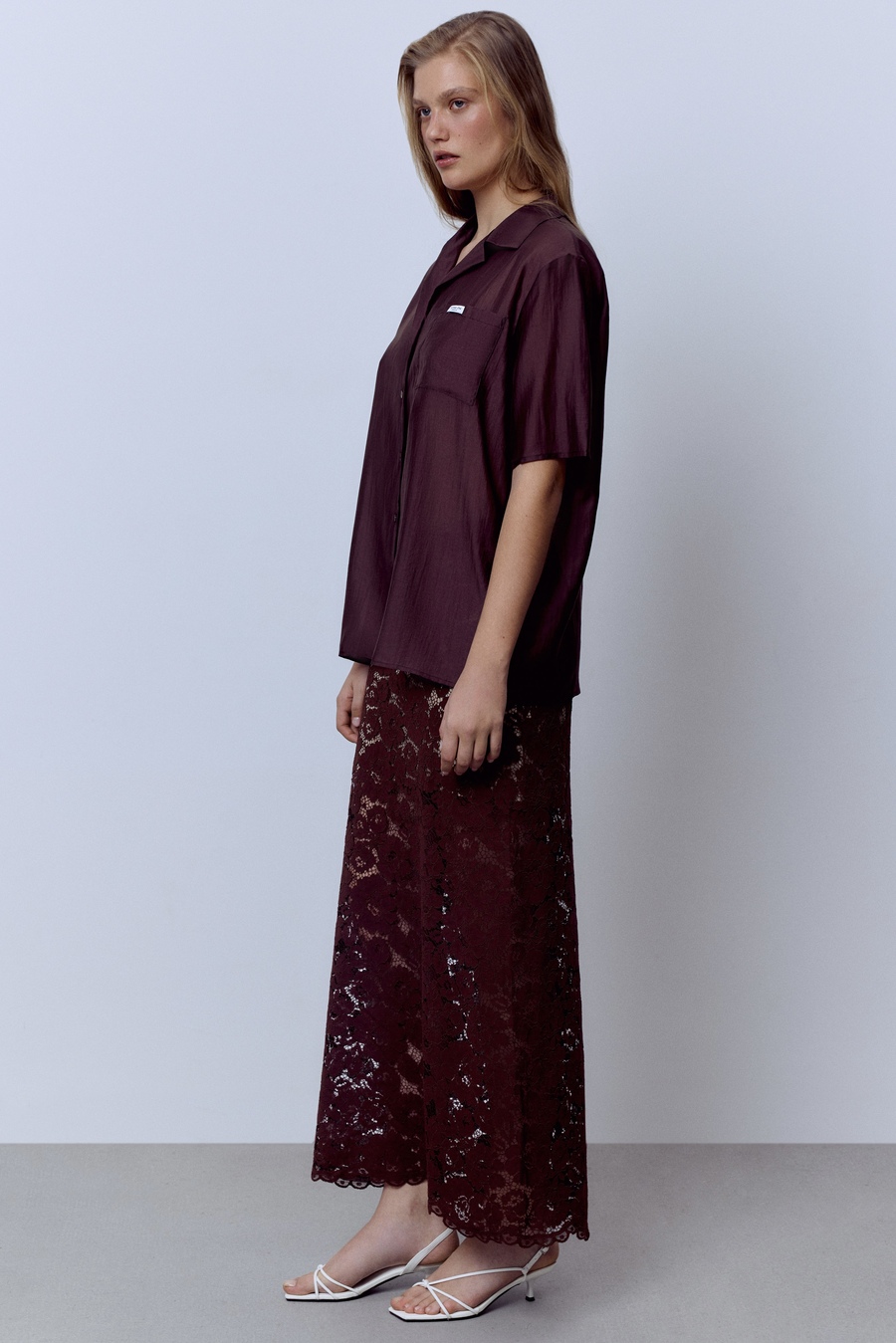 Рубашка из батистовой вуали с кружевом, шоколад