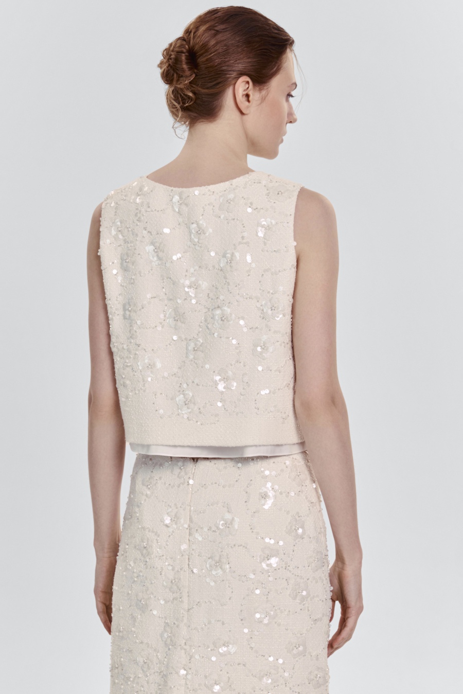 Топ из твида с бисером и пайетками, молочный